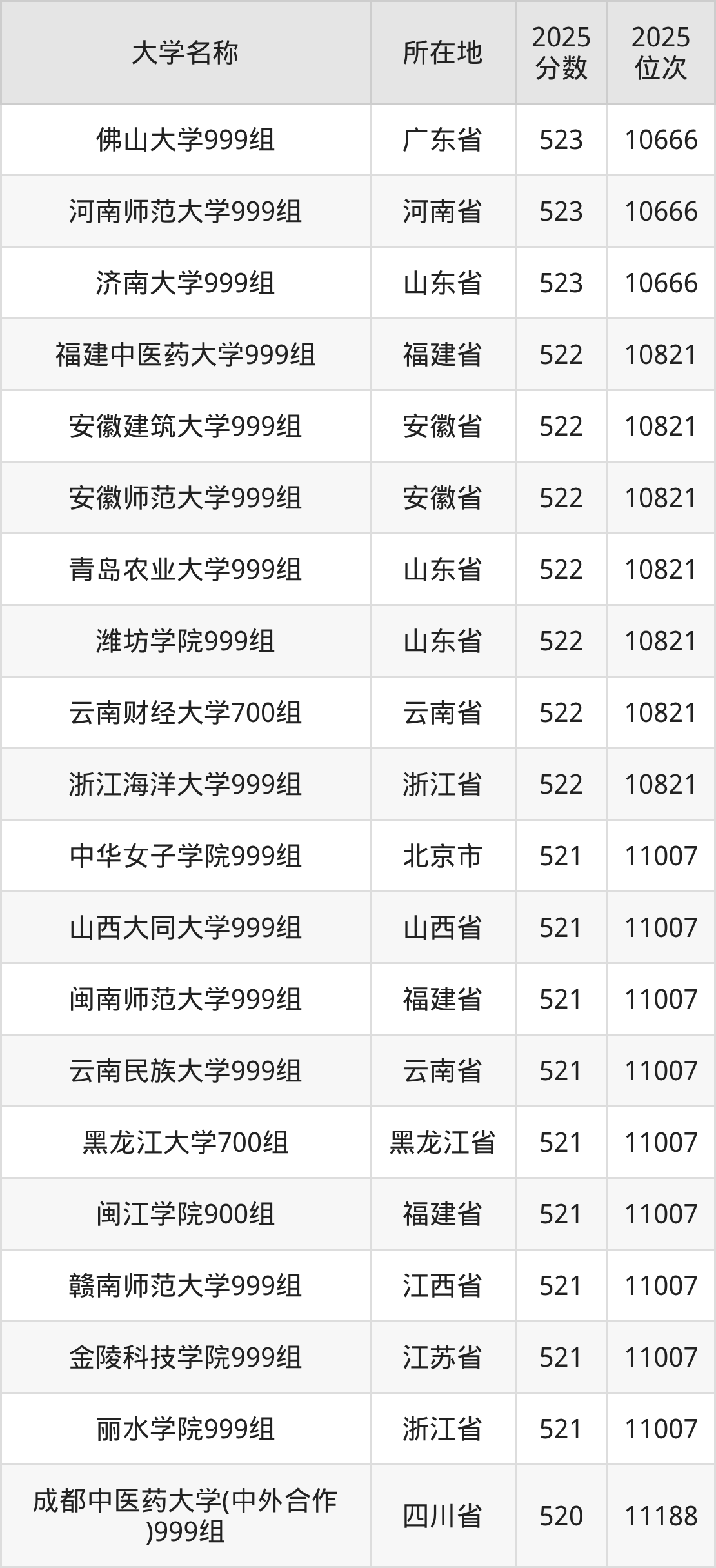 小编依据圆梦志愿平台提供的全国高校在福建省招生录取数据,精心筛选并整理了针对2026年福建考生的一份重要参考:列出了2025年录取位次接近福建省第11000名的大学清单。
