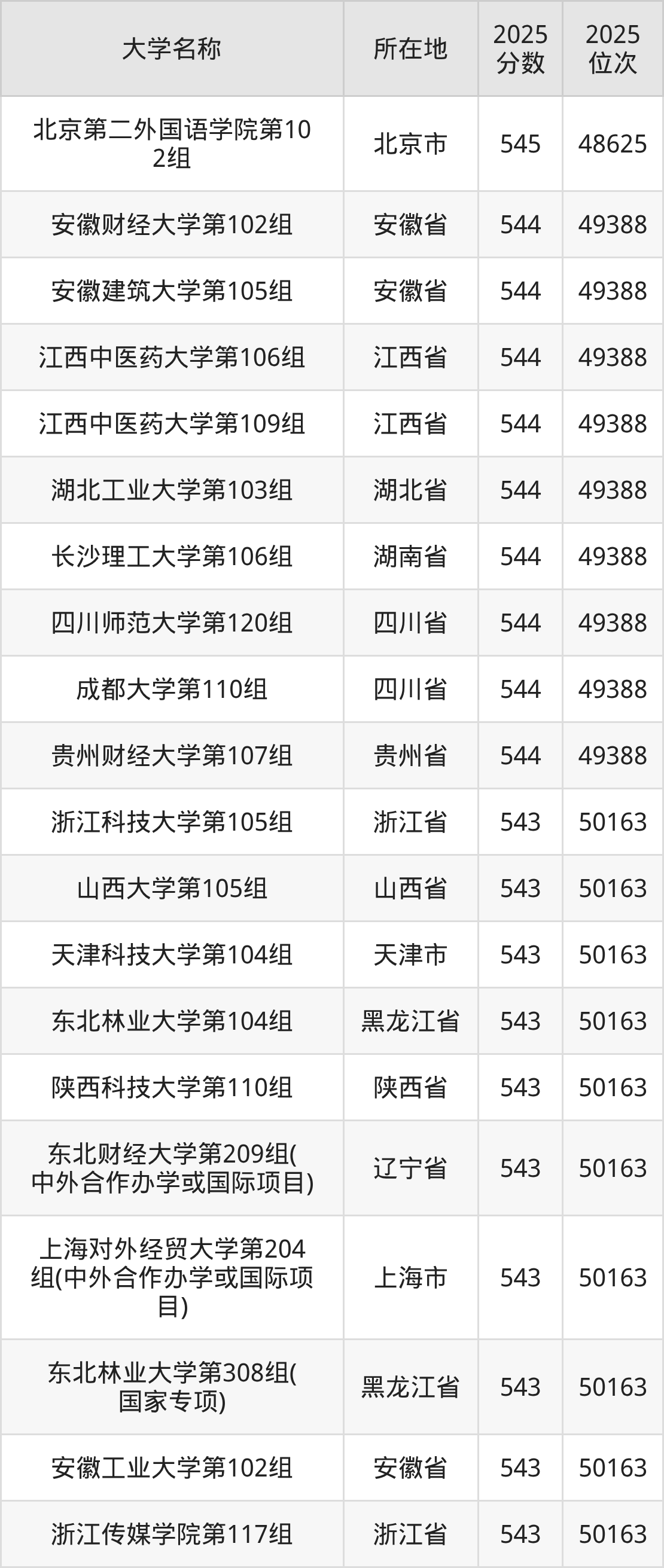 有4所分布在北京、浙江、上海等报考热门地区,具体包含:北京第二外国语学院、浙江科技大学、上海对外经贸大学、浙江传媒学院。