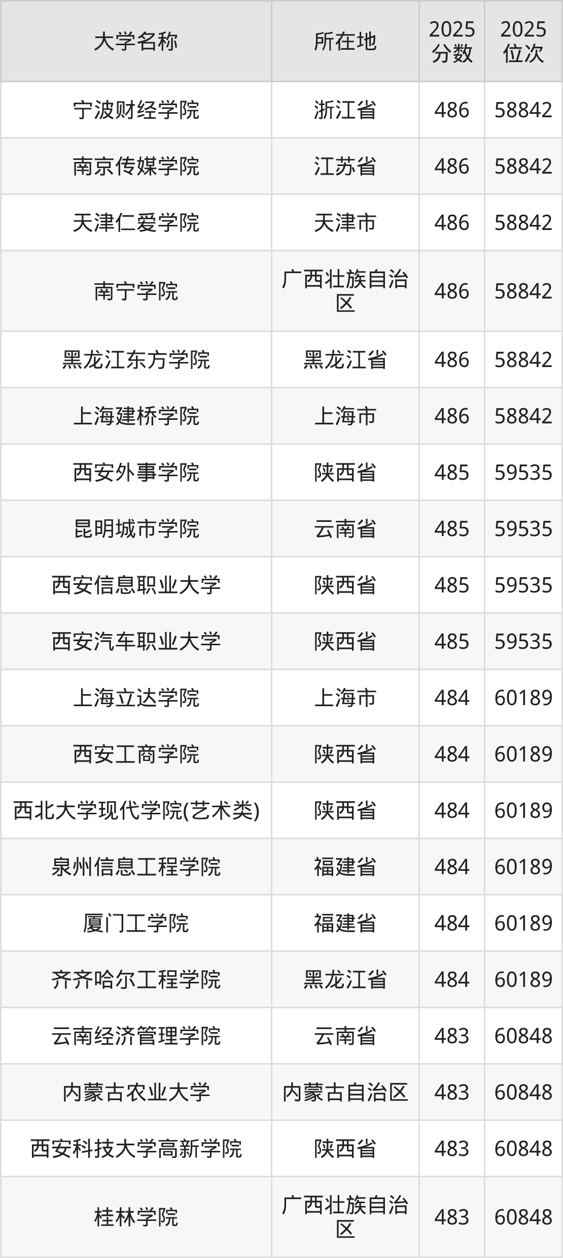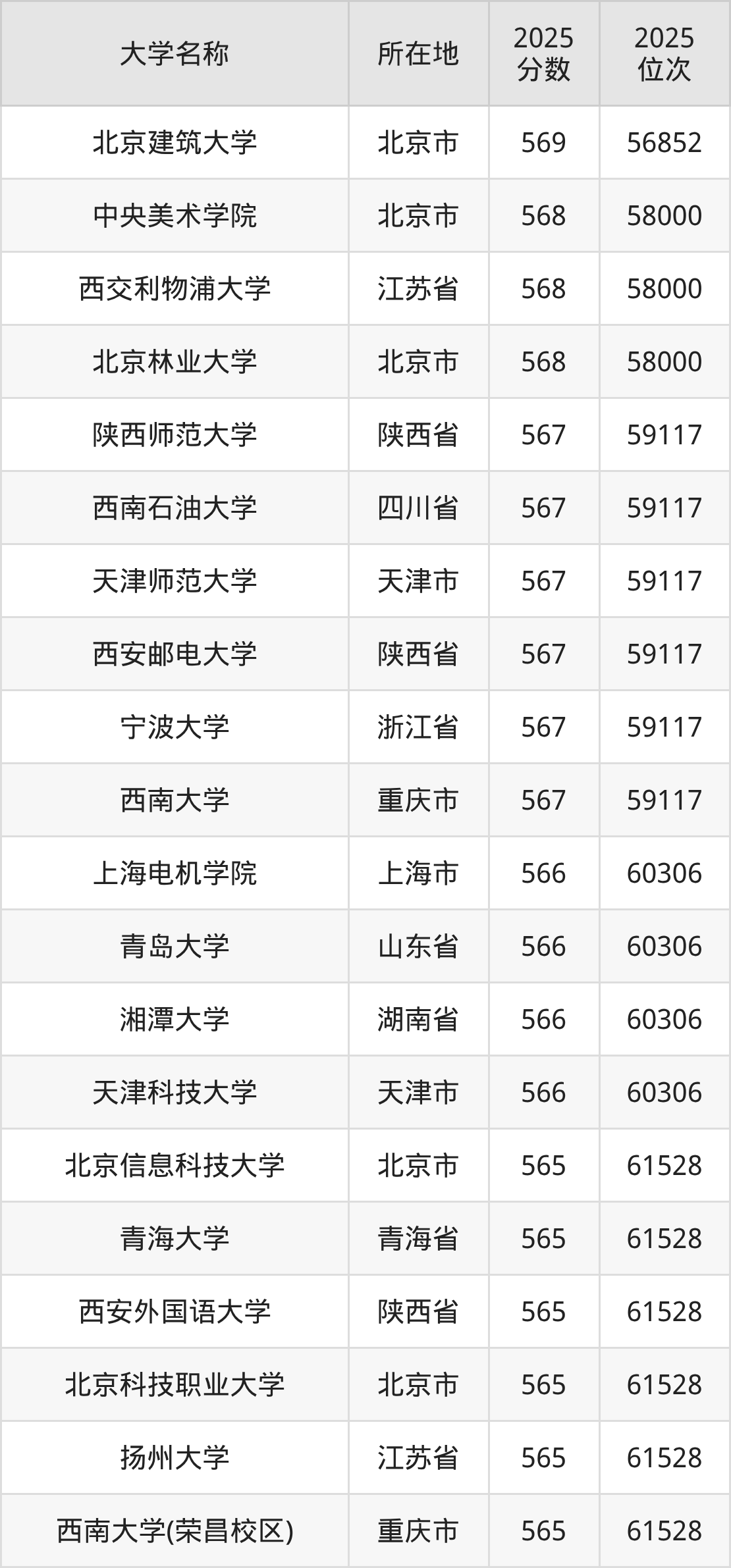 小编依据圆梦志愿平台提供的全国高校在河北省招生录取数据,精心筛选并整理了针对2026年河北考生的一份重要参考:列出了2025年录取位次接近河北省第60000名的大学清单。
