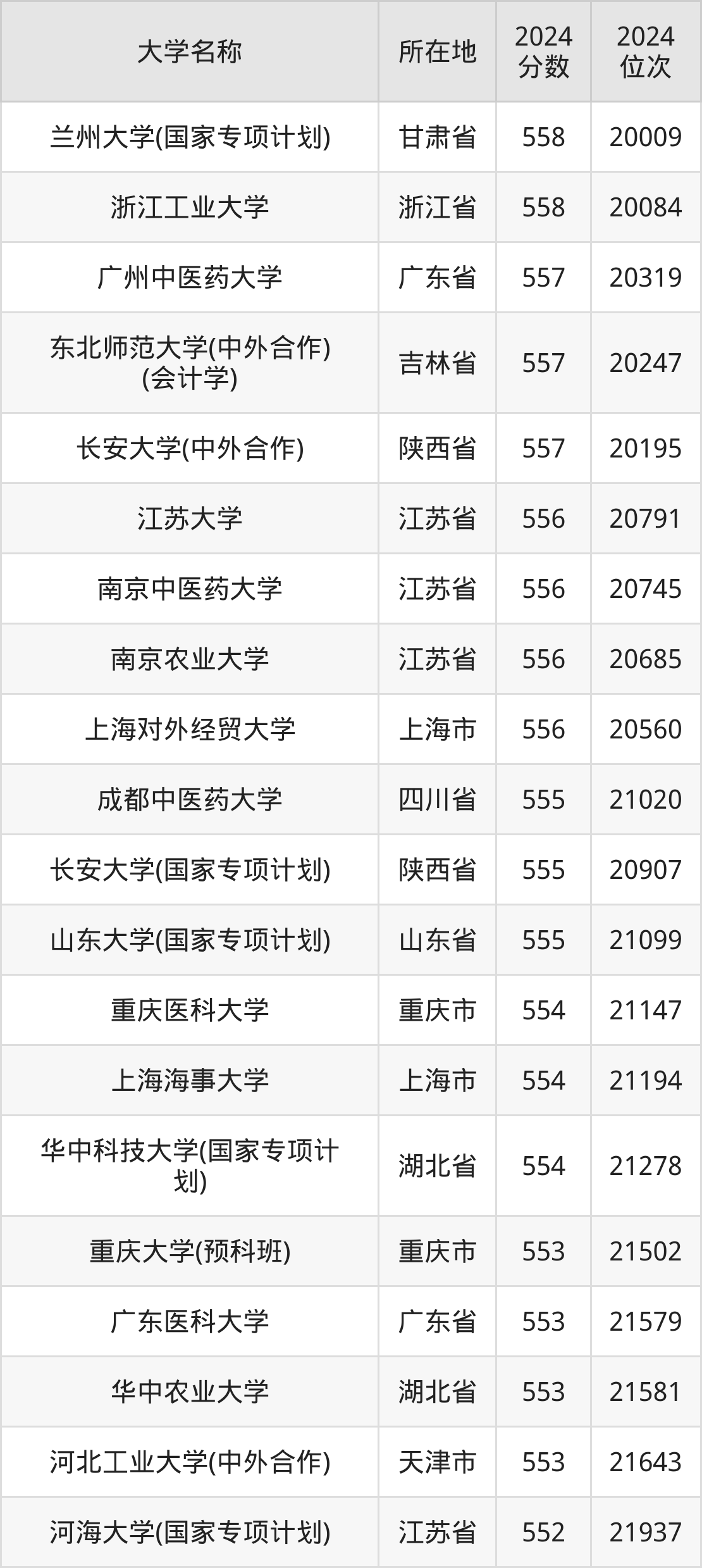 有9所分布在浙江、广东、江苏、上海等报考热门地区,具体包含:浙江工业大学、广州中医药大学、江苏大学、南京中医药大学、南京农业大学、上海对外经贸大学、上海海事大学、广东医科大学、河海大学(国家专项计划)。