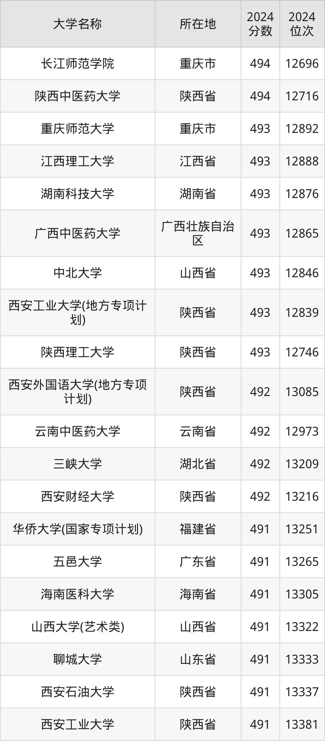 小编依据圆梦志愿平台提供的全国高校在陕西省招生录取数据,精心筛选并整理了针对2025年陕西考生的一份重要参考:列出了2024年录取位次接近陕西省第13000名的大学清单。