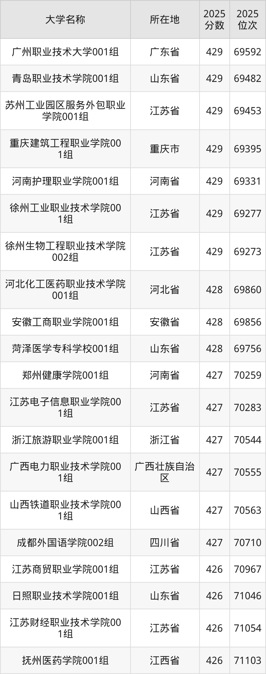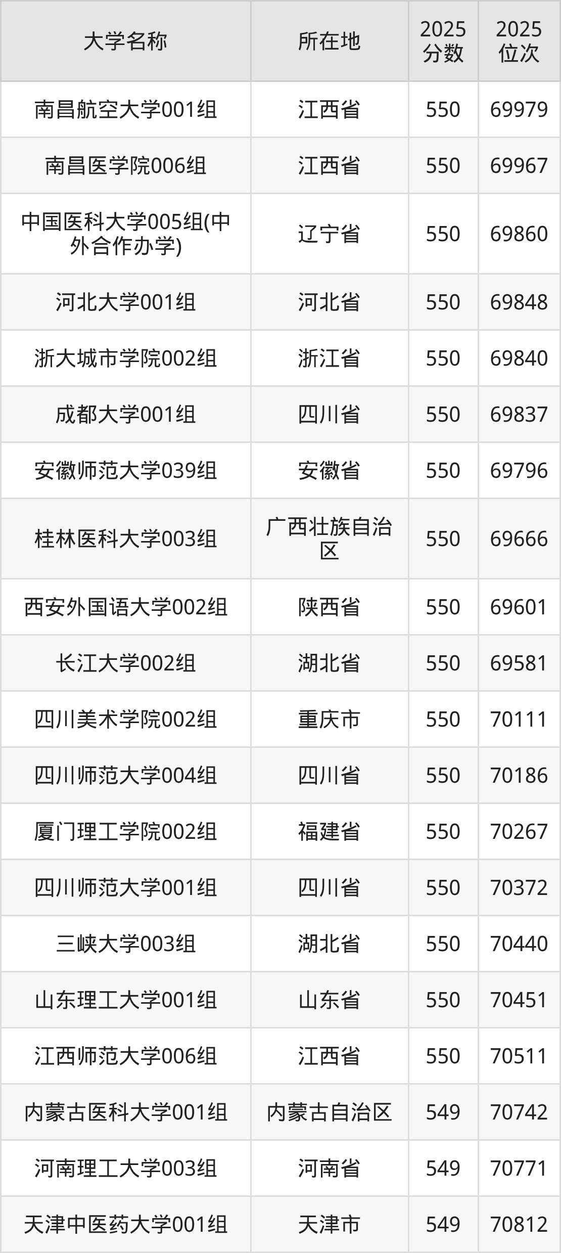 小编依据圆梦志愿平台提供的全国高校在安徽省招生录取数据,精心筛选并整理了针对2026年安徽考生的一份重要参考:列出了2025年录取位次接近安徽省第70000名的大学清单。