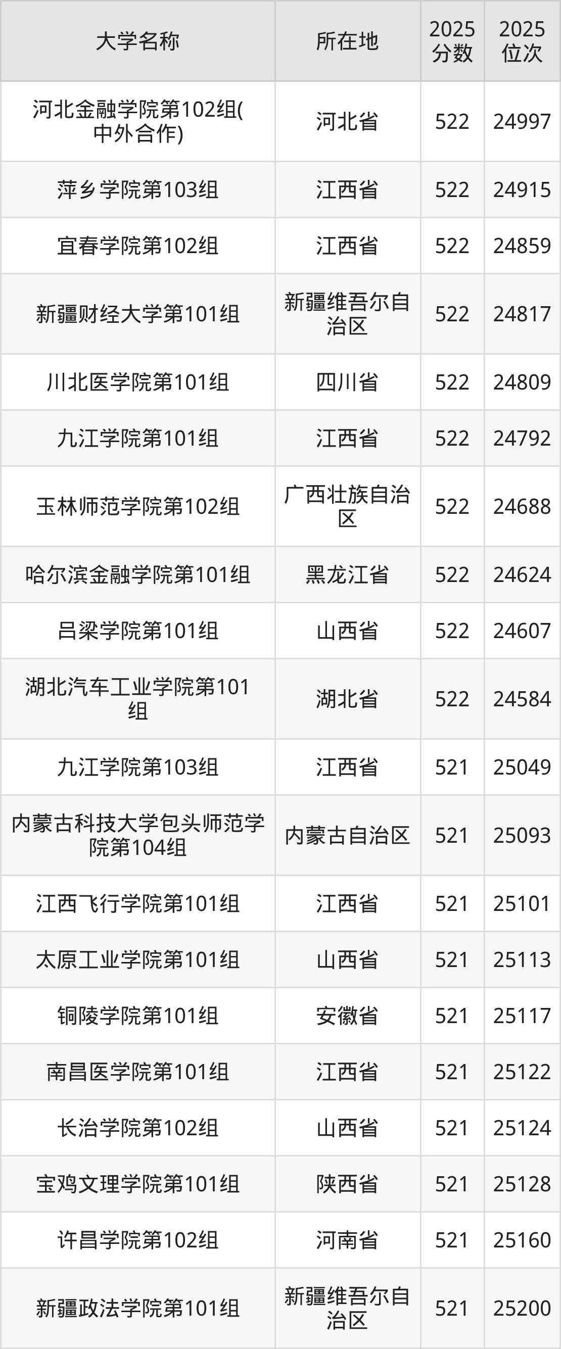 小编依据圆梦志愿平台提供的全国高校在江西省招生录取数据,精心筛选并整理了针对2026年江西考生的一份重要参考:列出了2025年录取位次接近江西省第25000名的大学清单。