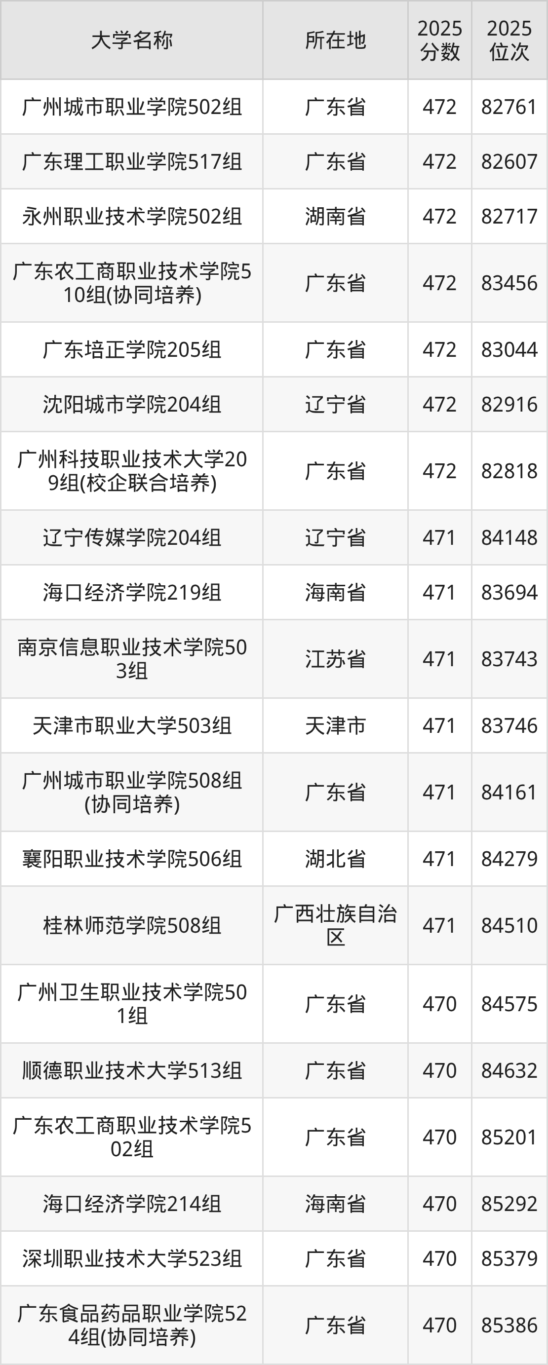 小编依据圆梦志愿平台提供的全国高校在广东省招生录取数据,精心筛选并整理了针对2026年广东考生的一份重要参考:列出了2025年录取位次接近广东省第84000名的大学清单。