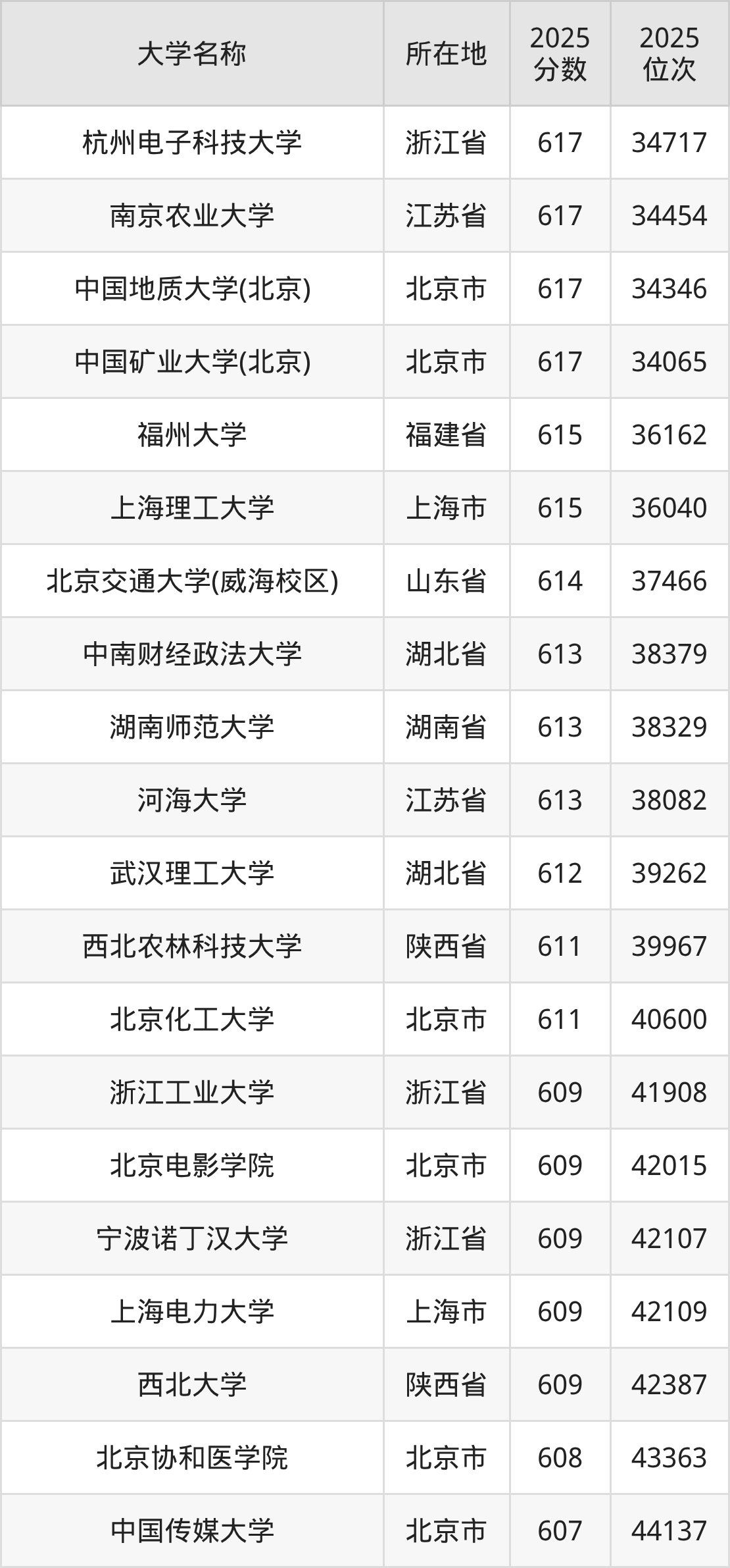 2025年浙江高考34000名至44000名对应的高考分数是608分至617分,请2026年浙江考生参考!
