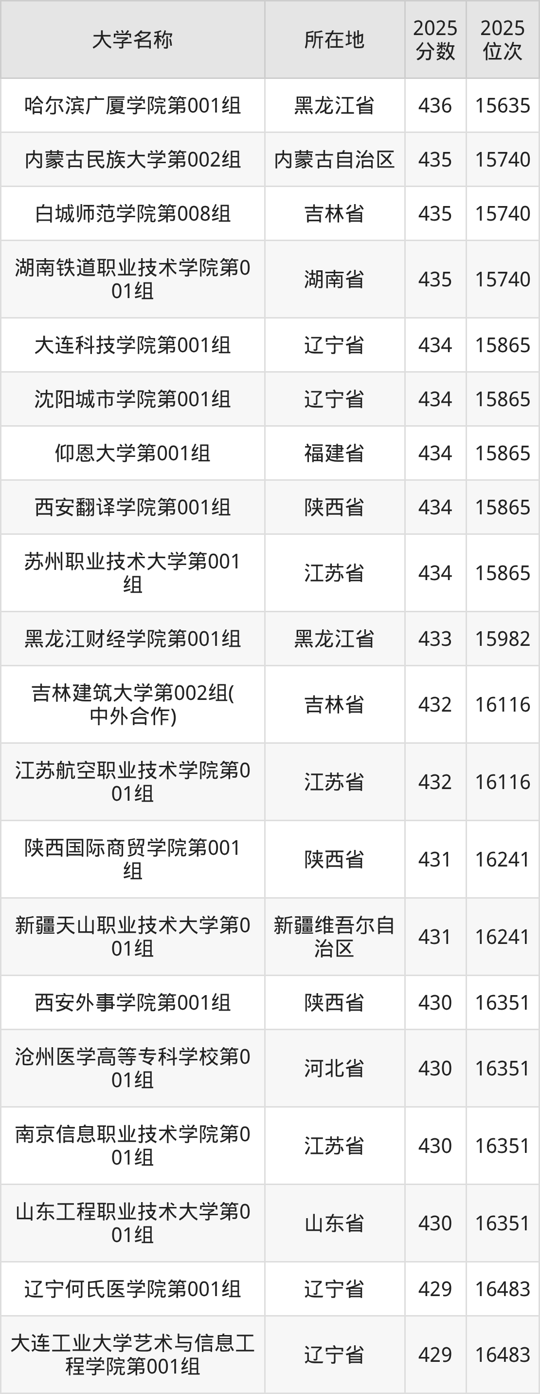 小编依据圆梦志愿平台提供的全国高校在吉林省招生录取数据,精心筛选并整理了针对2026年吉林考生的一份重要参考:列出了2025年录取位次接近吉林省第16000名的大学清单。