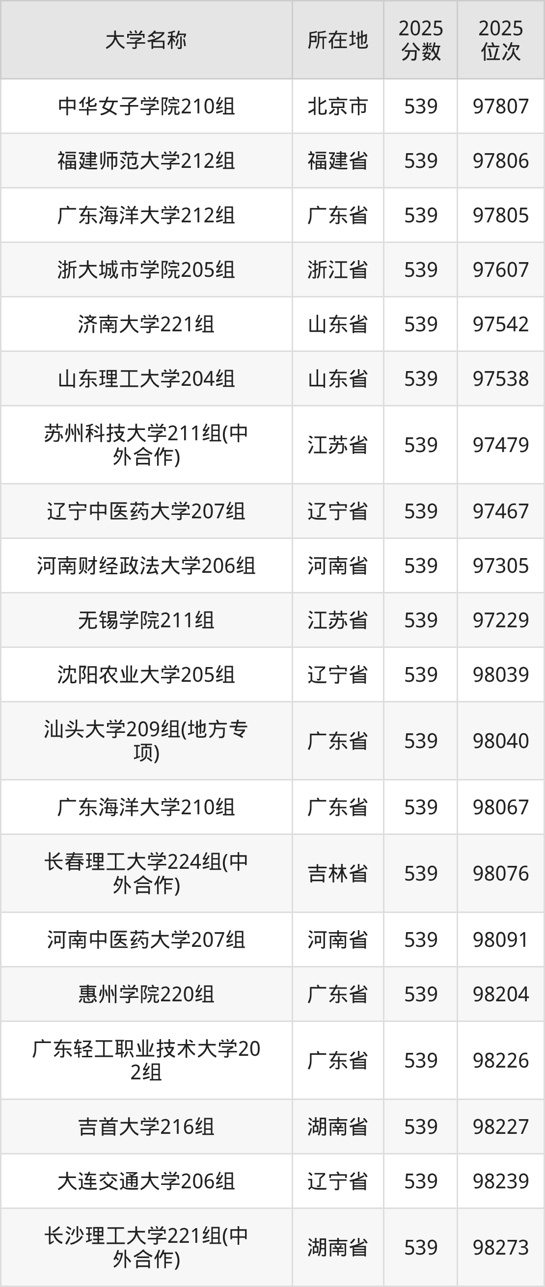 小编依据圆梦志愿平台提供的全国高校在广东省招生录取数据,精心筛选并整理了针对2026年广东考生的一份重要参考:列出了2025年录取位次接近广东省第98000名的大学清单。