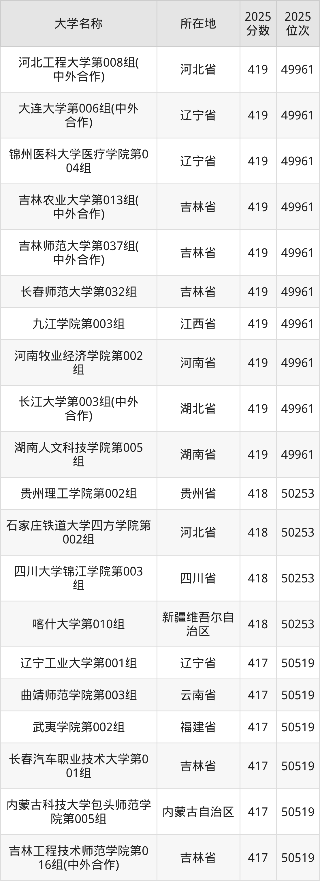 小编依据圆梦志愿平台提供的全国高校在吉林省招生录取数据,精心筛选并整理了针对2026年吉林考生的一份重要参考:列出了2025年录取位次接近吉林省第50000名的大学清单。