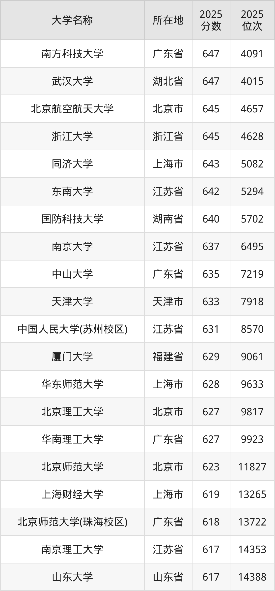 有15所分布在广东、北京、浙江、上海、江苏等报考热门地区,具体包含:南方科技大学、北京航空航天大学、浙江大学、同济大学、东南大学、南京大学、中山大学、中国人民大学(苏州校区)、华东师范大学、北京理工大学、华南理工大学、北京师范大学、上海财经大学、北京师范大学(珠海校区)、南京理工大学。