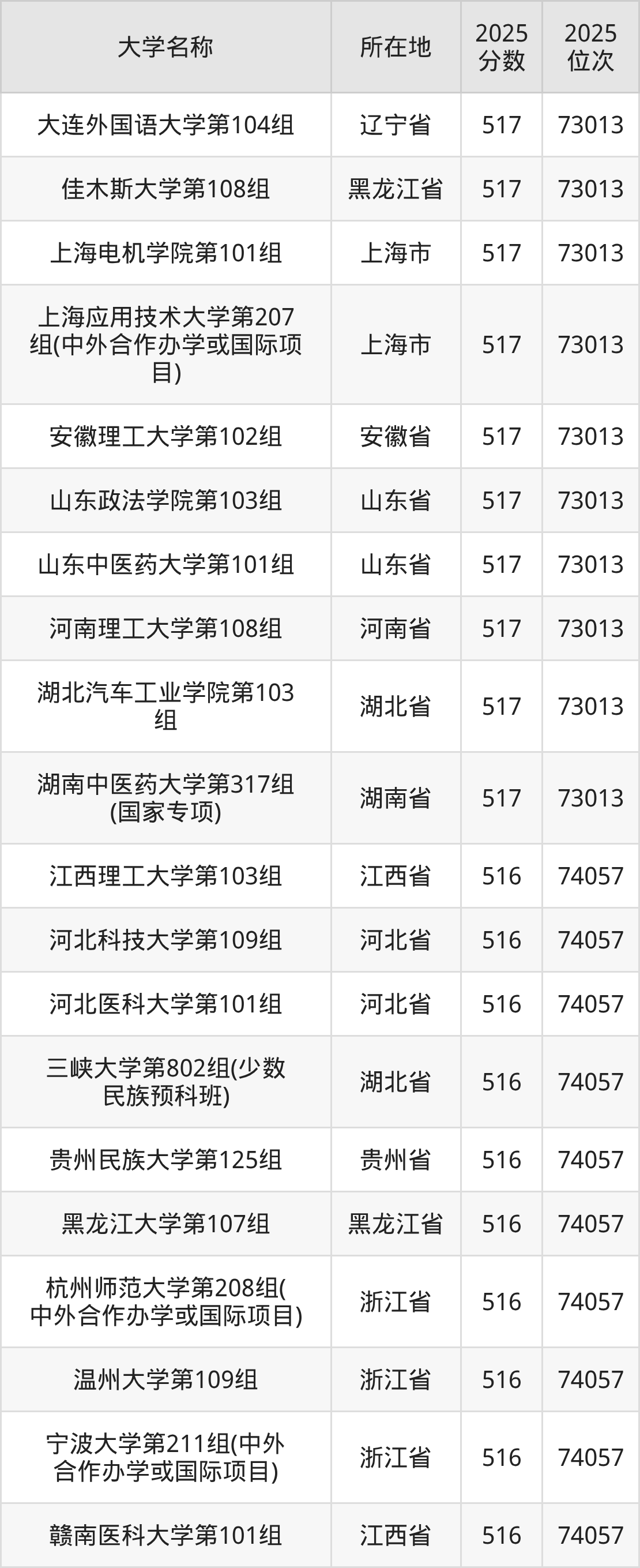 小编依据圆梦志愿平台提供的全国高校在湖南省招生录取数据,精心筛选并整理了针对2026年湖南考生的一份重要参考:列出了2025年录取位次接近湖南省第74000名的大学清单。