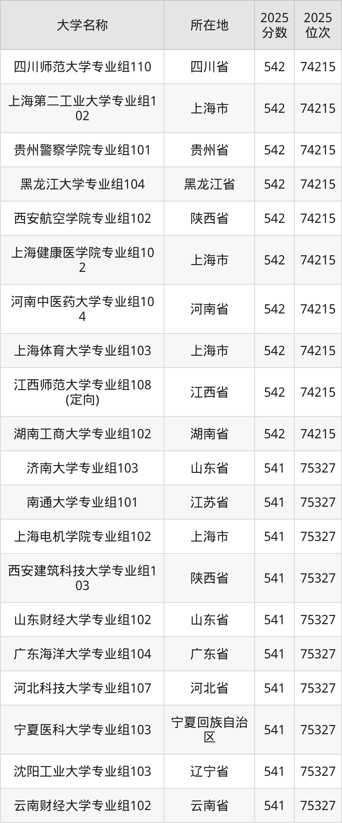 小编依据圆梦志愿平台提供的全国高校在四川省招生录取数据,精心筛选并整理了针对2026年四川考生的一份重要参考:列出了2025年录取位次接近四川省第75000名的大学清单。