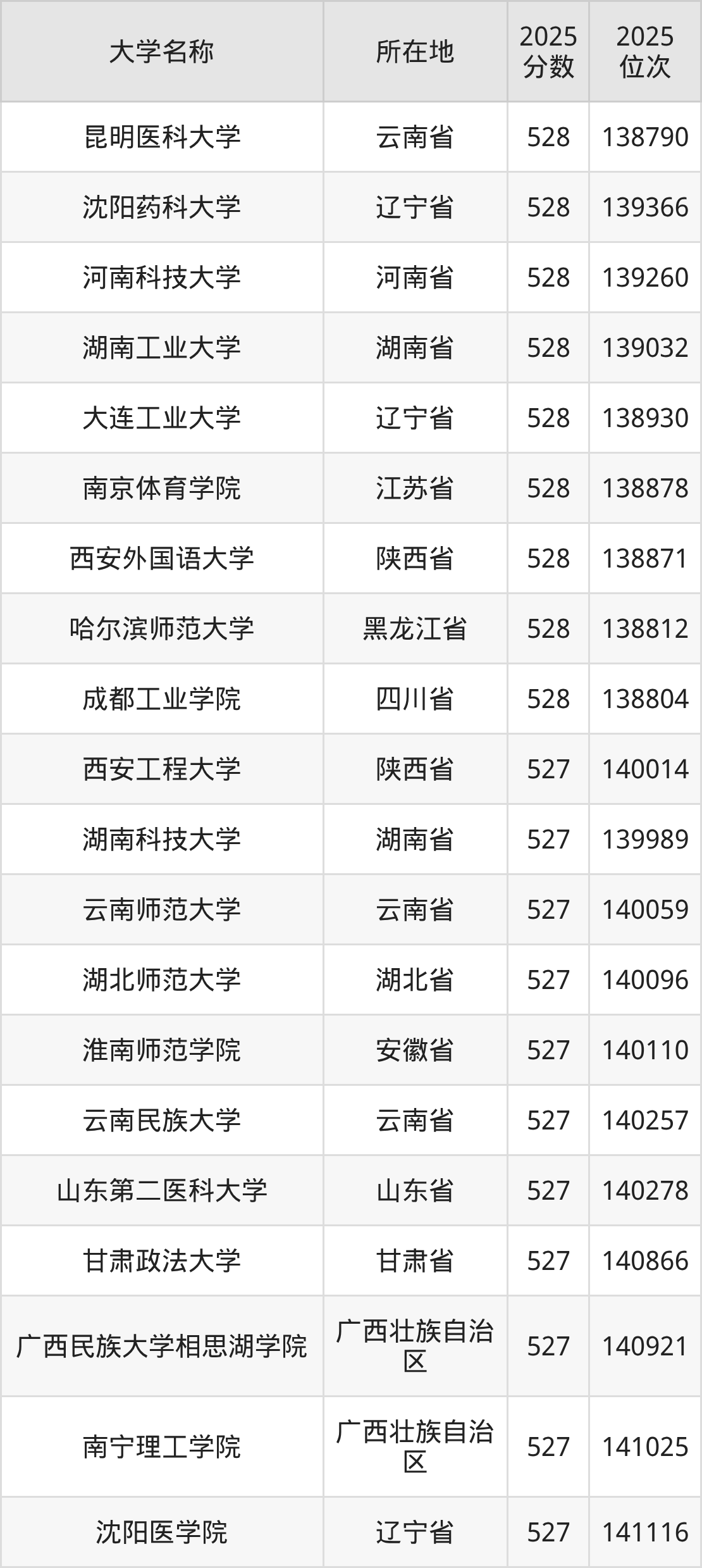 2026年浙江高考排名全省140000名左右能上的大学包含:昆明医科大学、沈阳药科大学、河南科技大学、湖南工业大学、大连工业大学等。