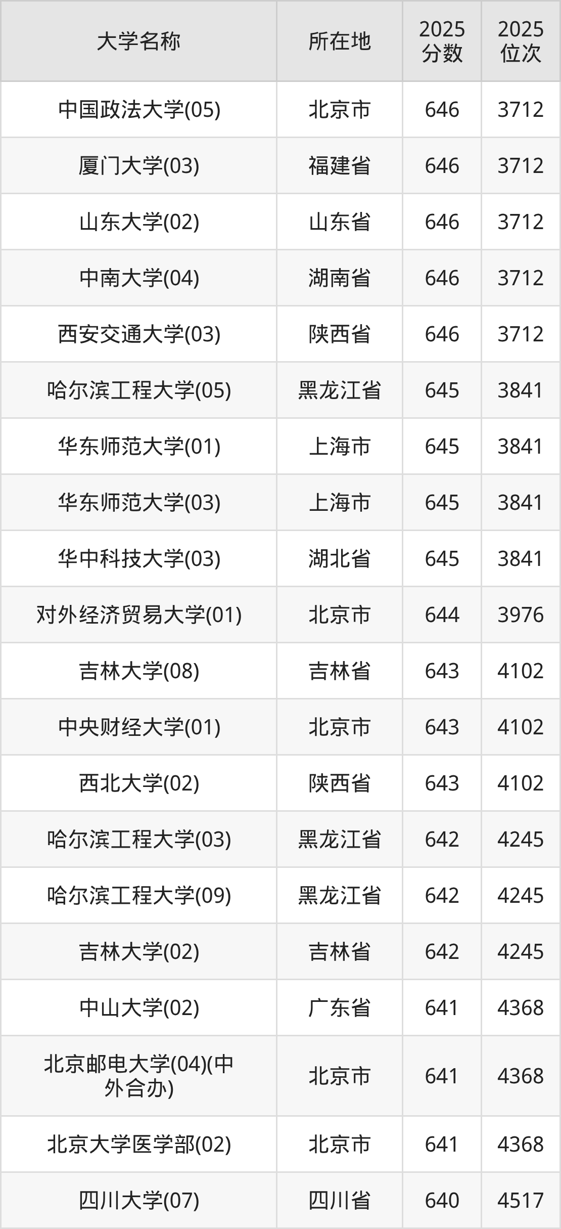 2025年北京高考3500名至4500名对应的高考分数是641分至647分,请2026年北京考生参考!