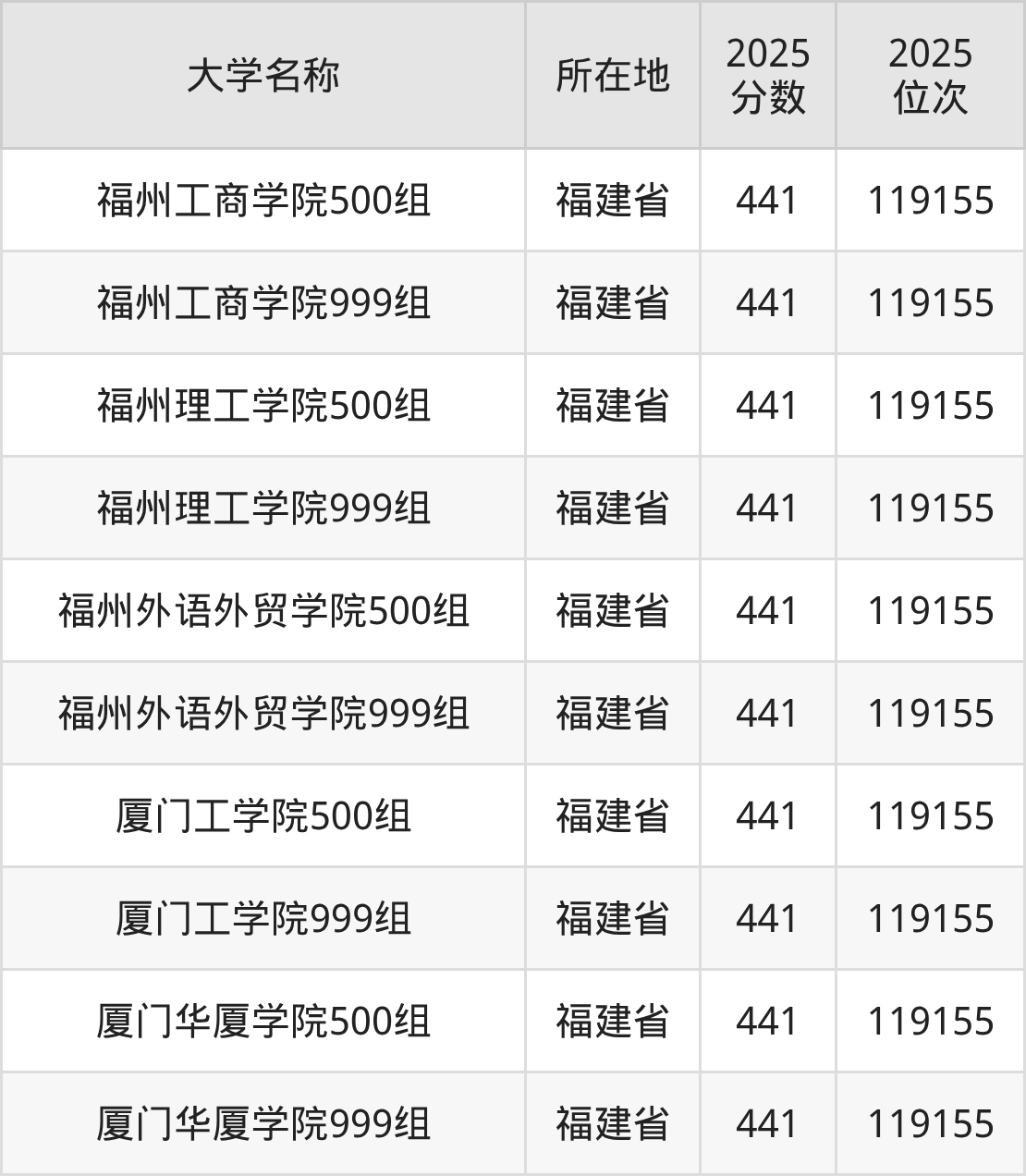 小编依据圆梦志愿平台提供的全国高校在福建省招生录取数据,精心筛选并整理了针对2026年福建考生的一份重要参考:列出了2025年录取位次接近福建省第170000名的大学清单。