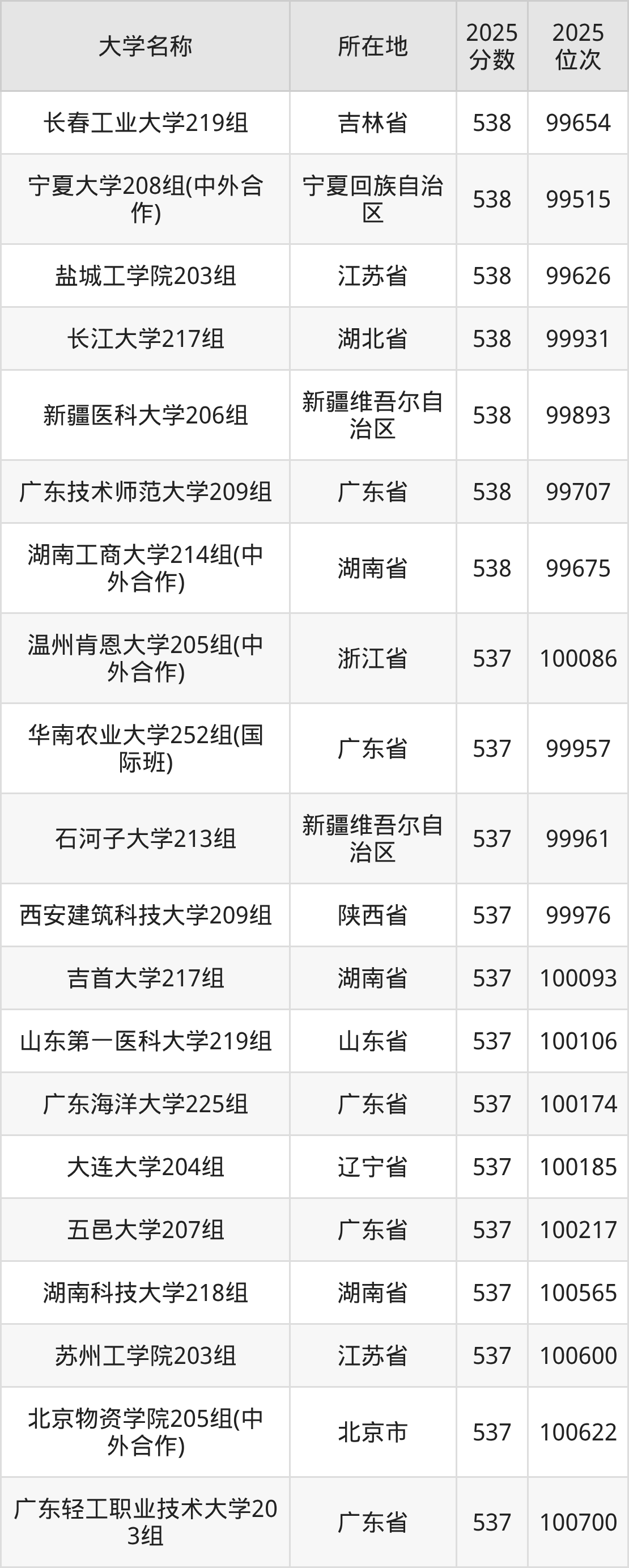 小编依据圆梦志愿平台提供的全国高校在广东省招生录取数据,精心筛选并整理了针对2026年广东考生的一份重要参考:列出了2025年录取位次接近广东省第100000名的大学清单。