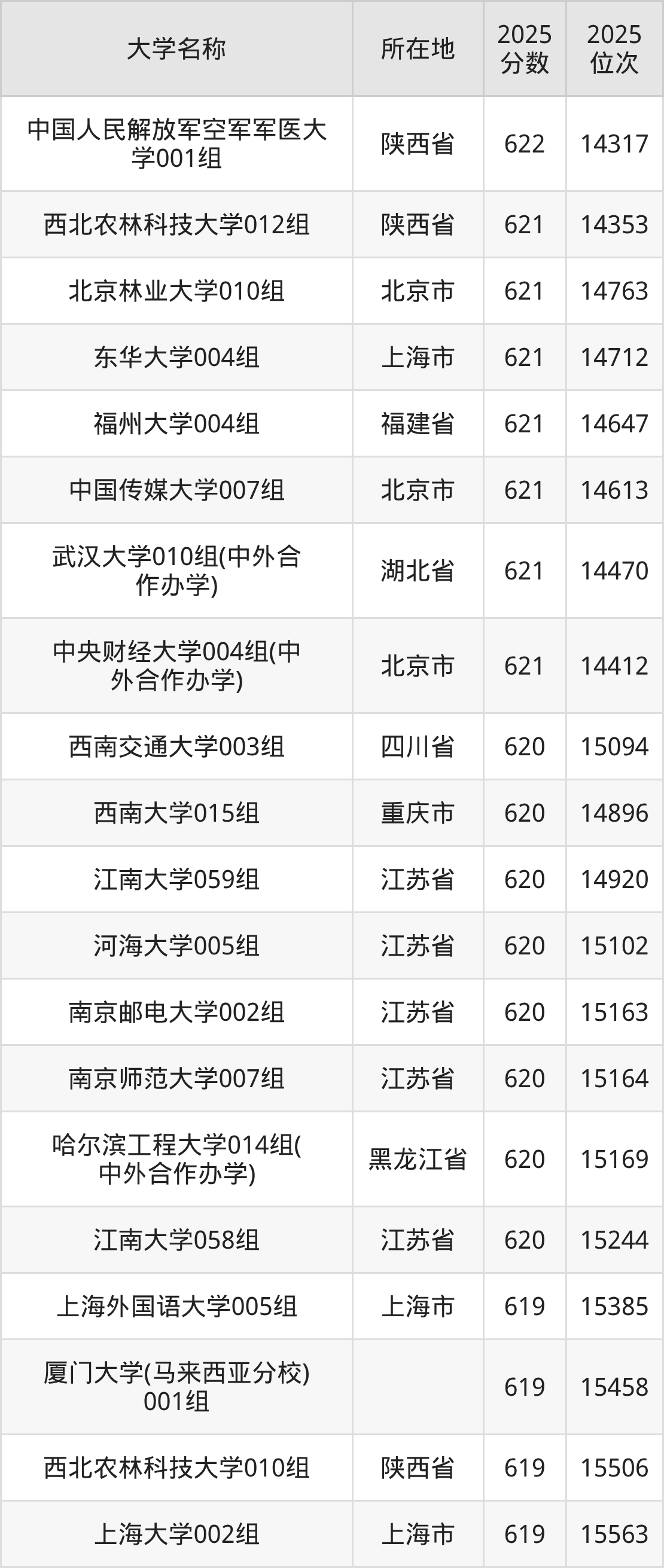 2026年安徽高考排名全省15000名左右能上的大学包含:空军军医大学、西北农林科技大学、北京林业大学、东华大学、福州大学等。