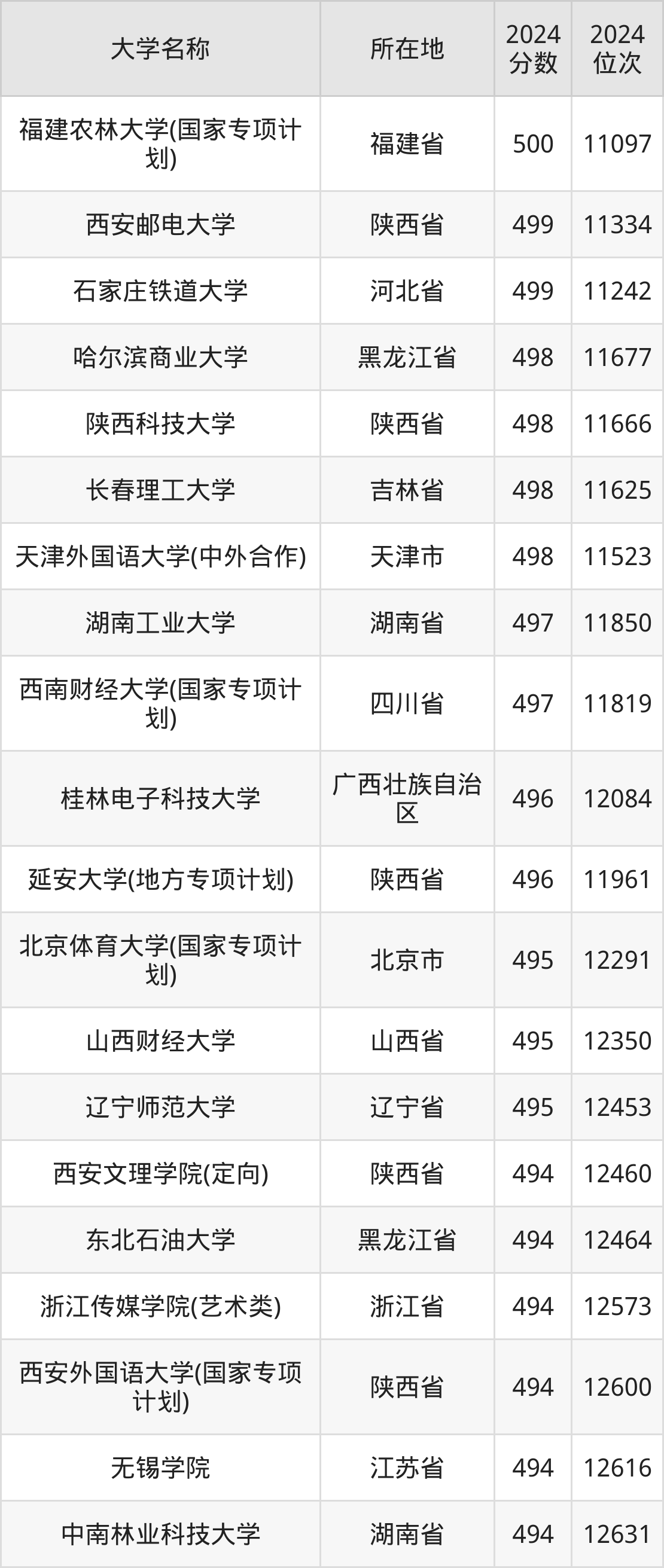 小编依据圆梦志愿平台提供的全国高校在陕西省招生录取数据,精心筛选并整理了针对2025年陕西考生的一份重要参考:列出了2024年录取位次接近陕西省第12000名的大学清单。