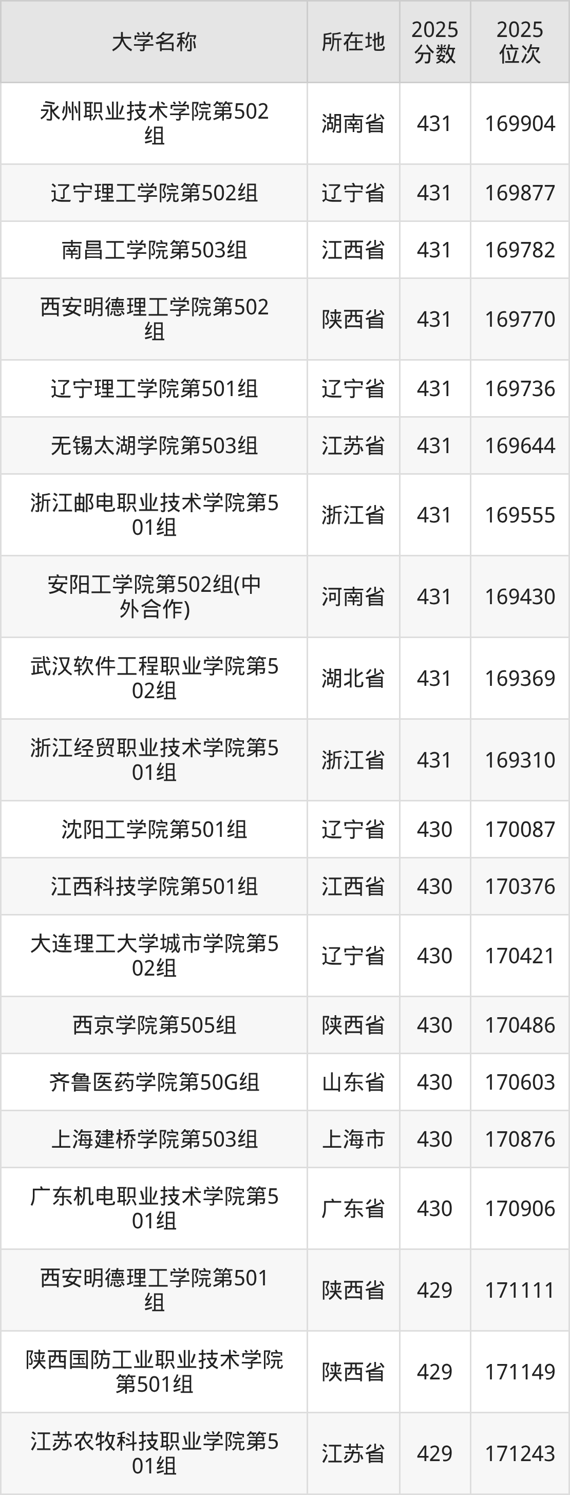 小编依据圆梦志愿平台提供的全国高校在江西省招生录取数据,精心筛选并整理了针对2026年江西考生的一份重要参考:列出了2025年录取位次接近江西省第170000名的大学清单。