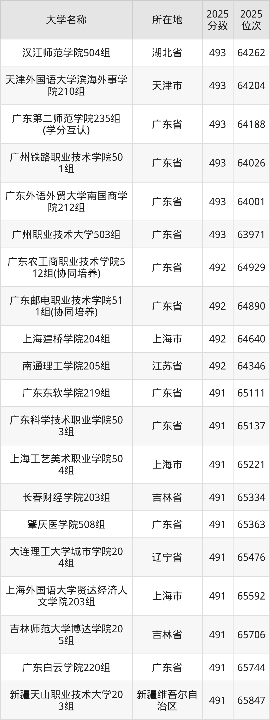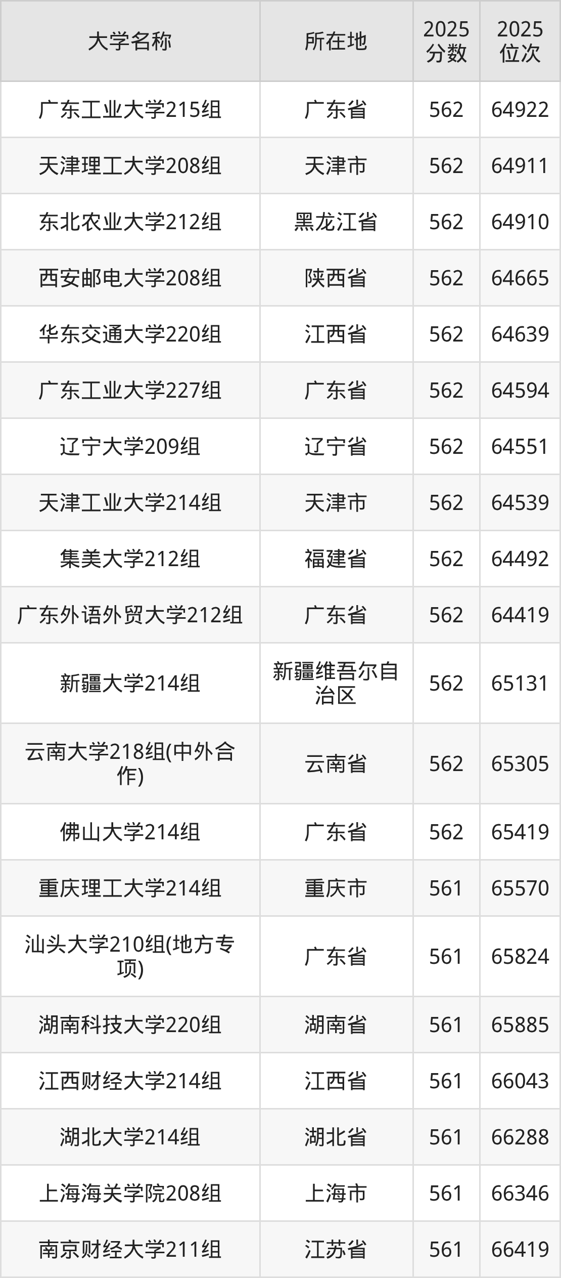 小编依据圆梦志愿平台提供的全国高校在广东省招生录取数据,精心筛选并整理了针对2026年广东考生的一份重要参考:列出了2025年录取位次接近广东省第65000名的大学清单。
