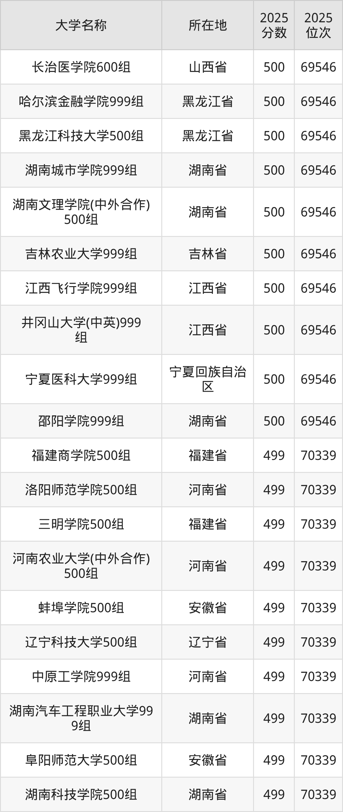 小编依据圆梦志愿平台提供的全国高校在福建省招生录取数据,精心筛选并整理了针对2026年福建考生的一份重要参考:列出了2025年录取位次接近福建省第70000名的大学清单。