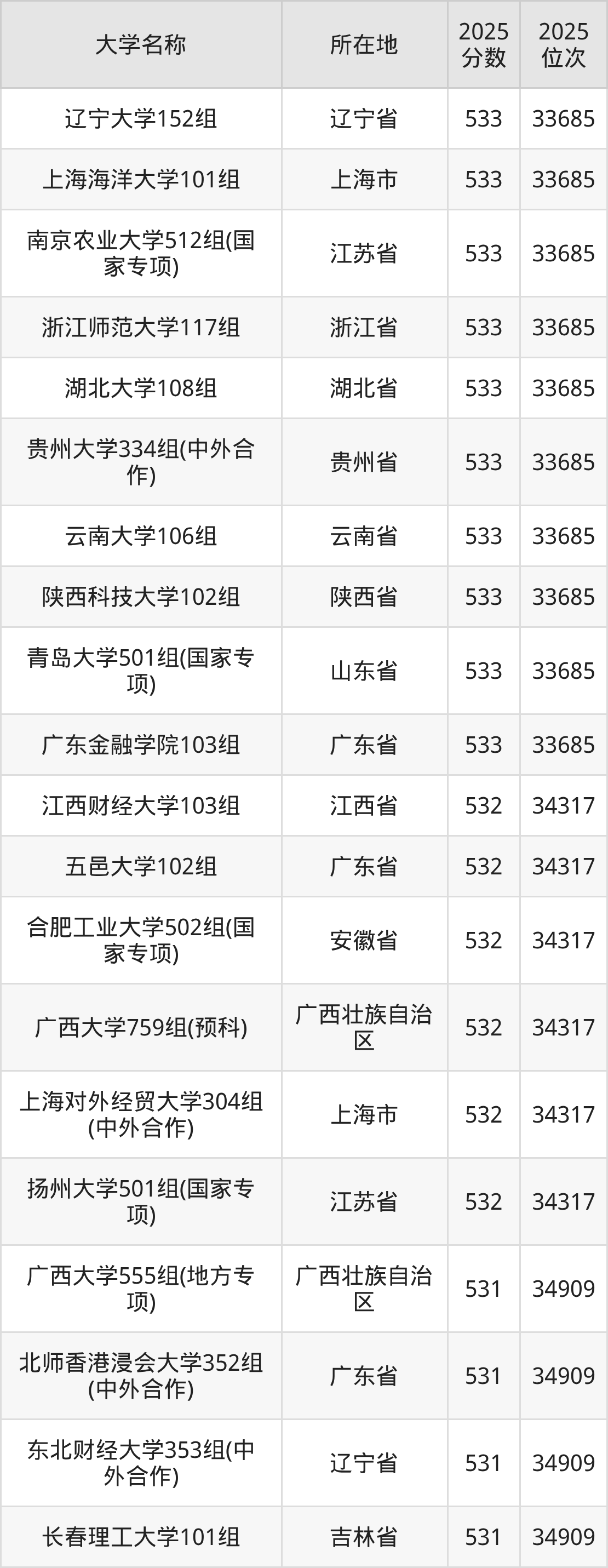 小编依据圆梦志愿平台提供的全国高校在广西壮族自治区招生录取数据,精心筛选并整理了针对2026年广西考生的一份重要参考:列出了2025年录取位次接近广西壮族自治区第34000名的大学清单。
