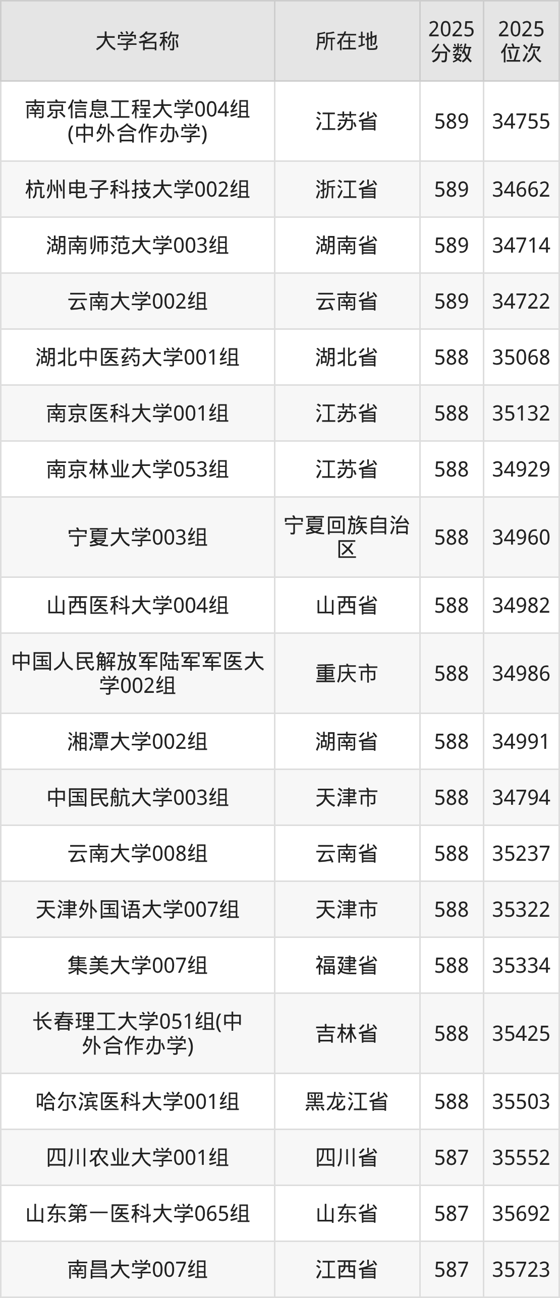 有4所分布在江苏、浙江等报考热门地区,具体包含:南京信息工程大学、杭州电子科技大学、南京医科大学、南京林业大学。