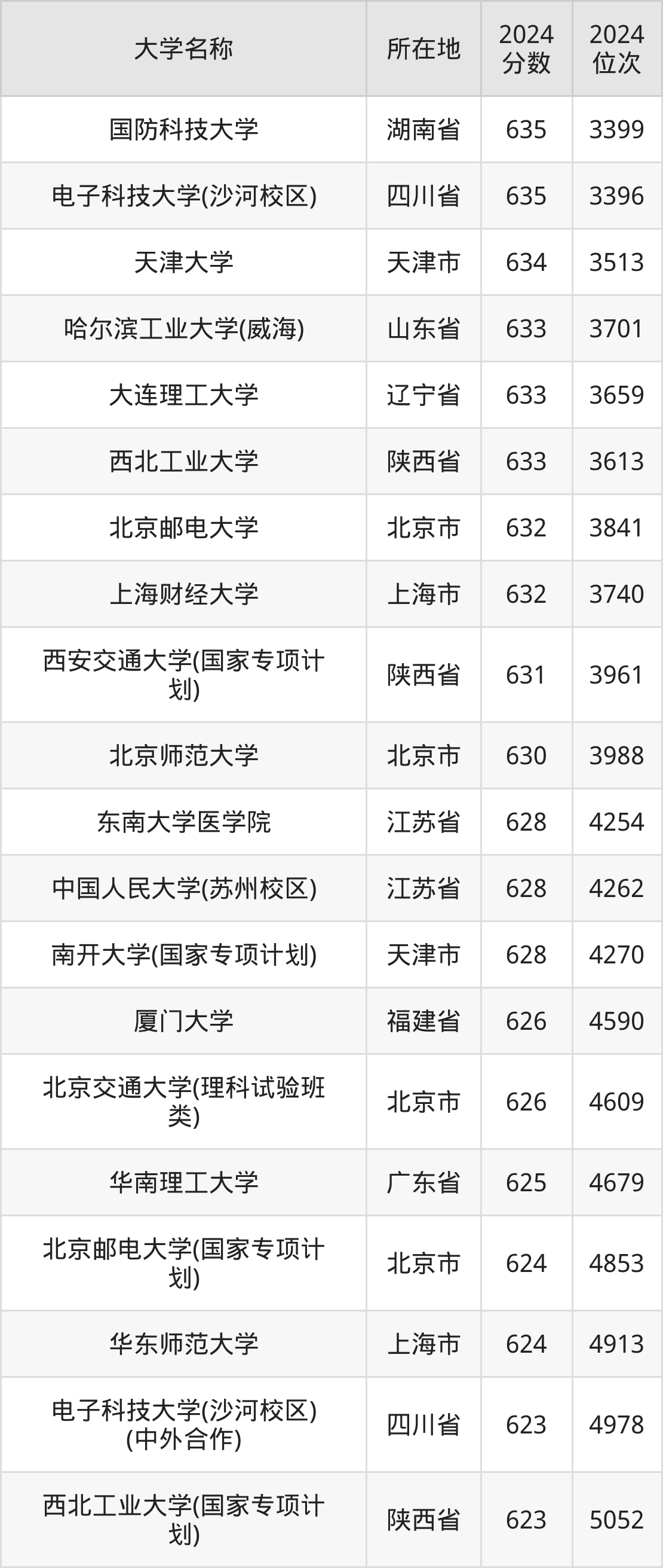 2024年陕西高考理科3500名至4500名对应的高考分数是628分至634分,请2025年陕西考生参考!