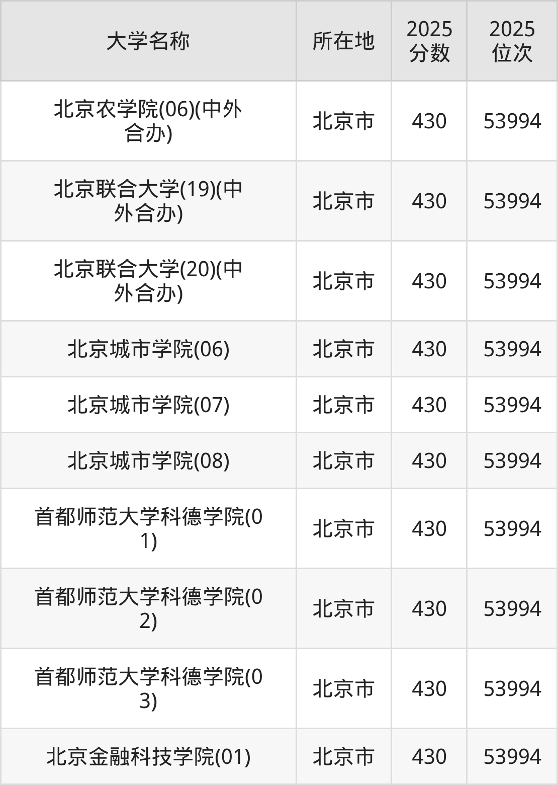 小编依据圆梦志愿平台提供的全国高校在北京市招生录取数据,精心筛选并整理了针对2026年北京考生的一份重要参考:列出了2025年录取位次接近北京市第180000名的大学清单。