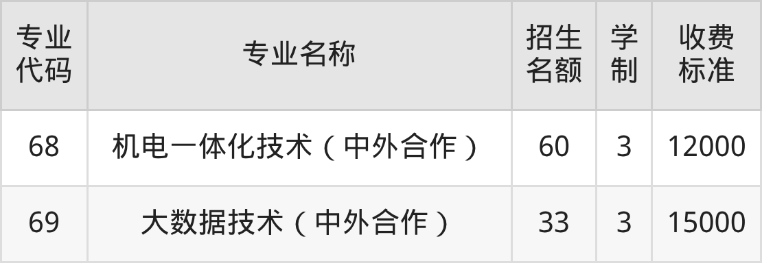 | 43 | 大数据技术(中外合作) | 35 | 3 | 15000 |