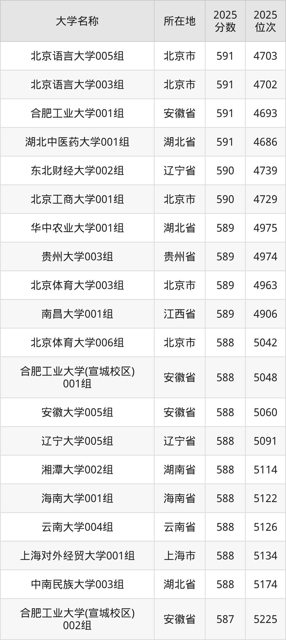 2025年安徽高考历史类4500名至5500名对应的高考分数是587分至592分,请2026年安徽考生参考!