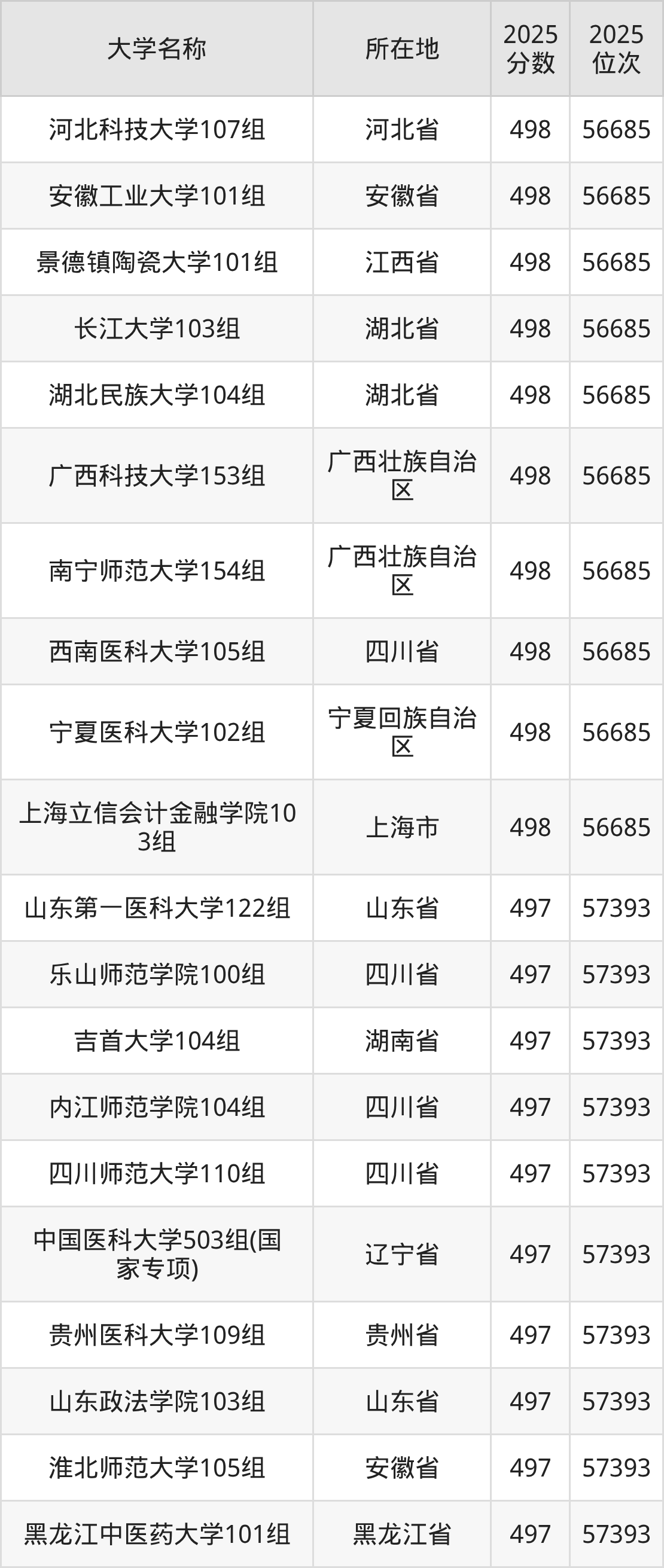小编依据圆梦志愿平台提供的全国高校在广西壮族自治区招生录取数据,精心筛选并整理了针对2026年广西考生的一份重要参考:列出了2025年录取位次接近广西壮族自治区第57000名的大学清单。