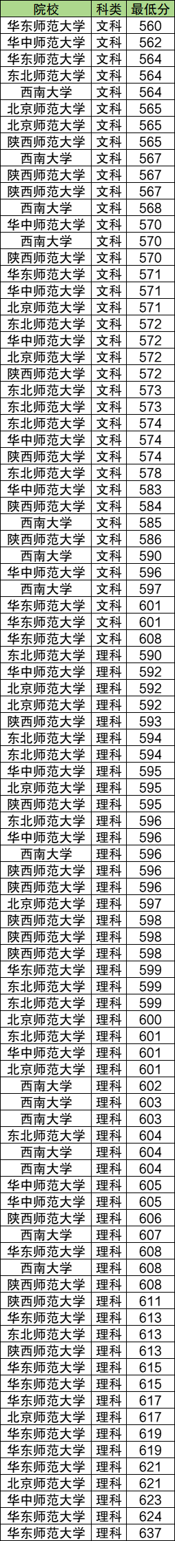 在内蒙古提前批招生的公费师范生有北京师范大学、东北师范大学、华东师范大学、华中师范大学、西南大学等6所,具体名单如下: