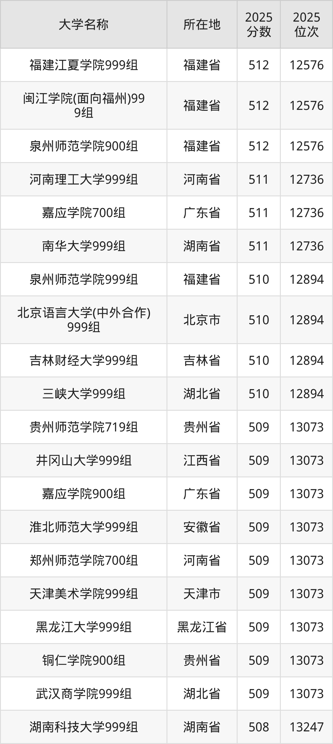 小编依据圆梦志愿平台提供的全国高校在福建省招生录取数据,精心筛选并整理了针对2026年福建考生的一份重要参考:列出了2025年录取位次接近福建省第13000名的大学清单。