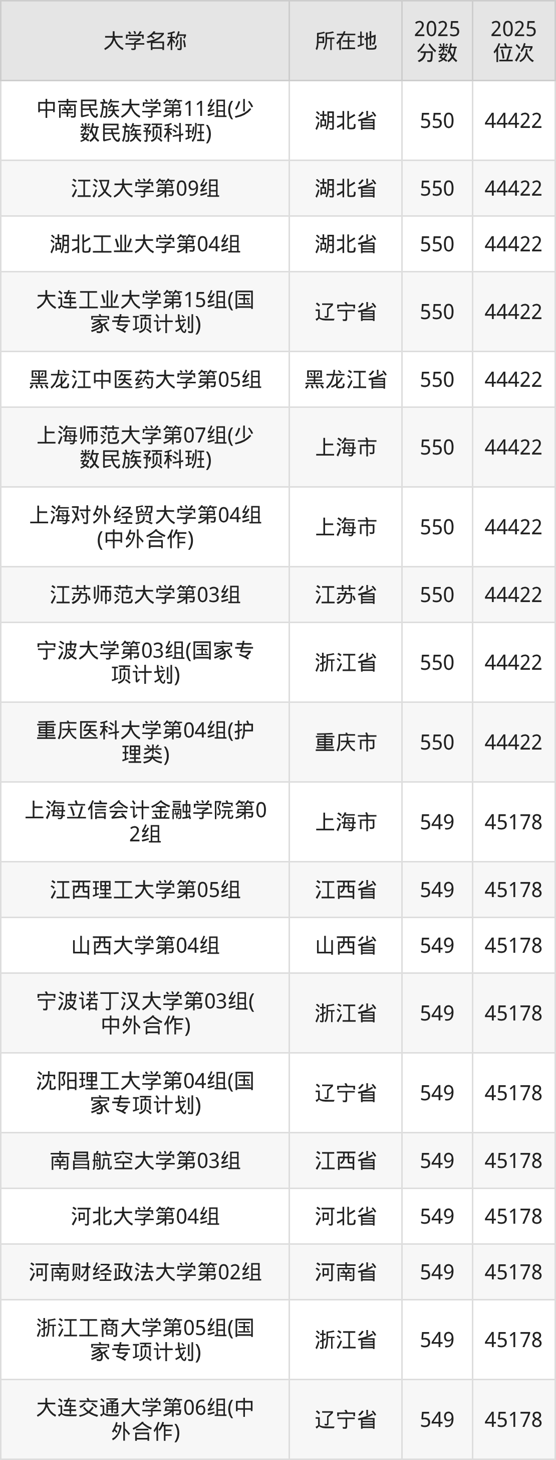 小编依据圆梦志愿平台提供的全国高校在湖北省招生录取数据,精心筛选并整理了针对2026年湖北考生的一份重要参考:列出了2025年录取位次接近湖北省第45000名的大学清单。