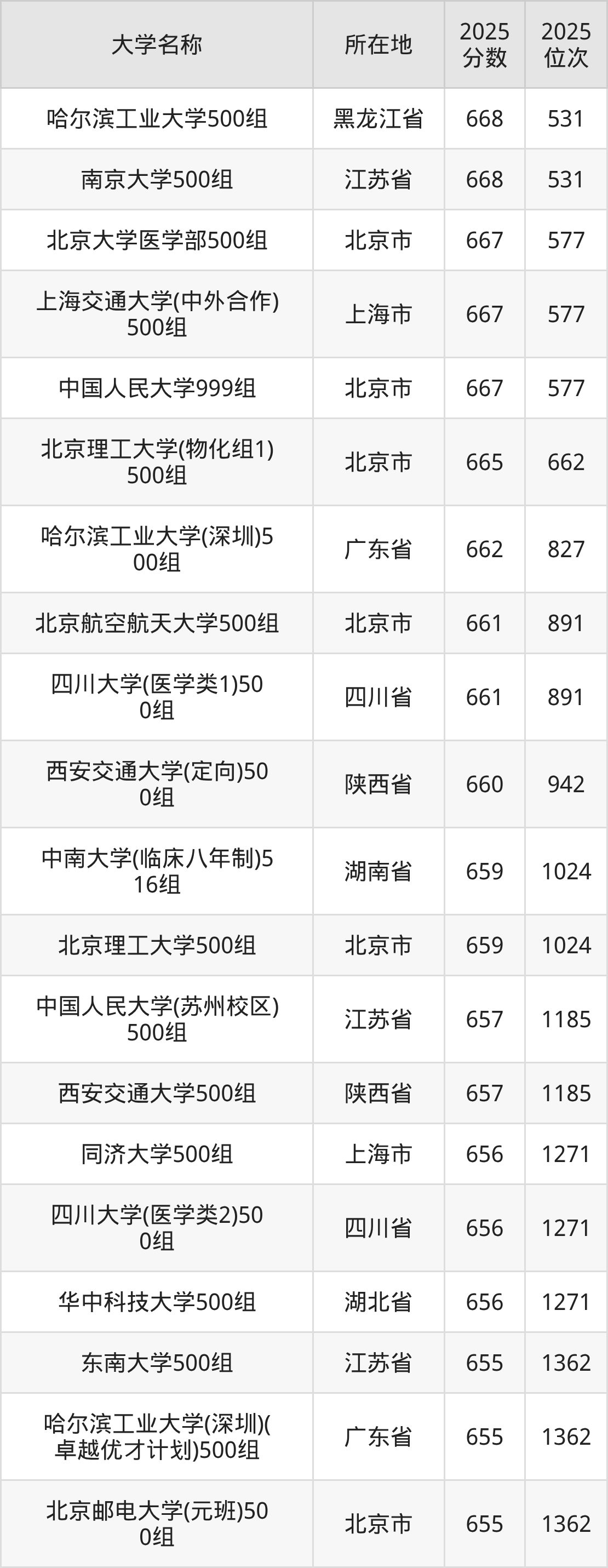 有13所分布在江苏、北京、上海、广东等报考热门地区,具体包含:南京大学、北京大学医学部、上海交通大学(中外合作)、中国人民大学、北京理工大学(工科试验班)、哈尔滨工业大学(深圳)、北京航空航天大学、北京理工大学、中国人民大学(苏州校区)、同济大学、东南大学、哈尔滨工业大学(深圳)(卓越优才计划)、北京邮电大学(元班)。