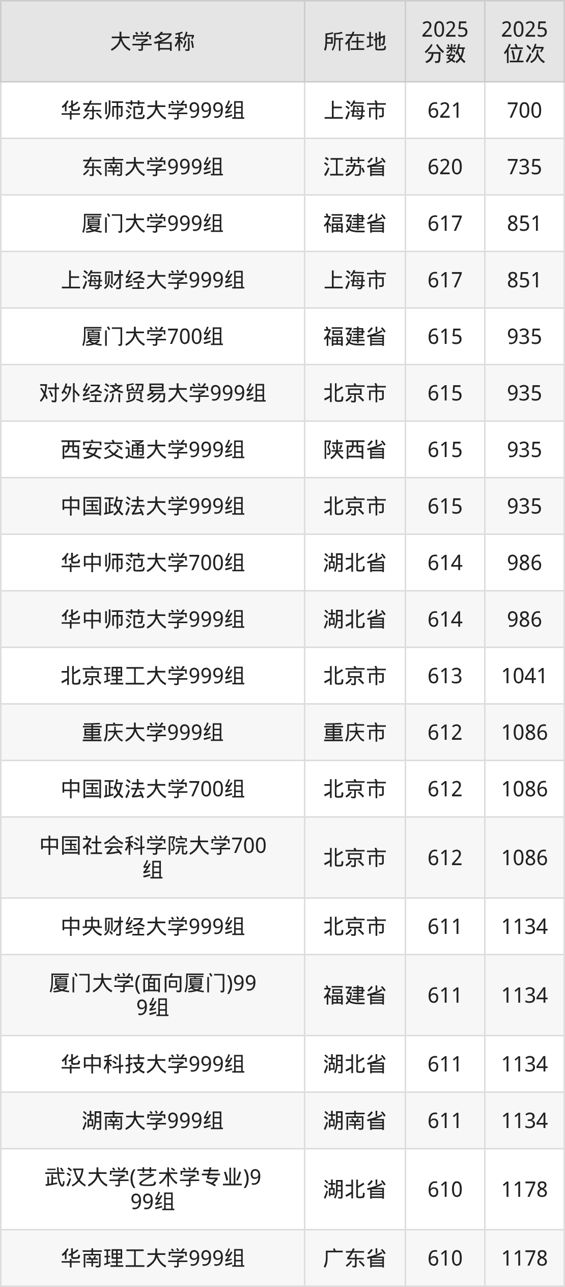 小编依据圆梦志愿平台提供的全国高校在福建省招生录取数据,精心筛选并整理了针对2026年福建考生的一份重要参考:列出了2025年录取位次接近福建省第1000名的大学清单。