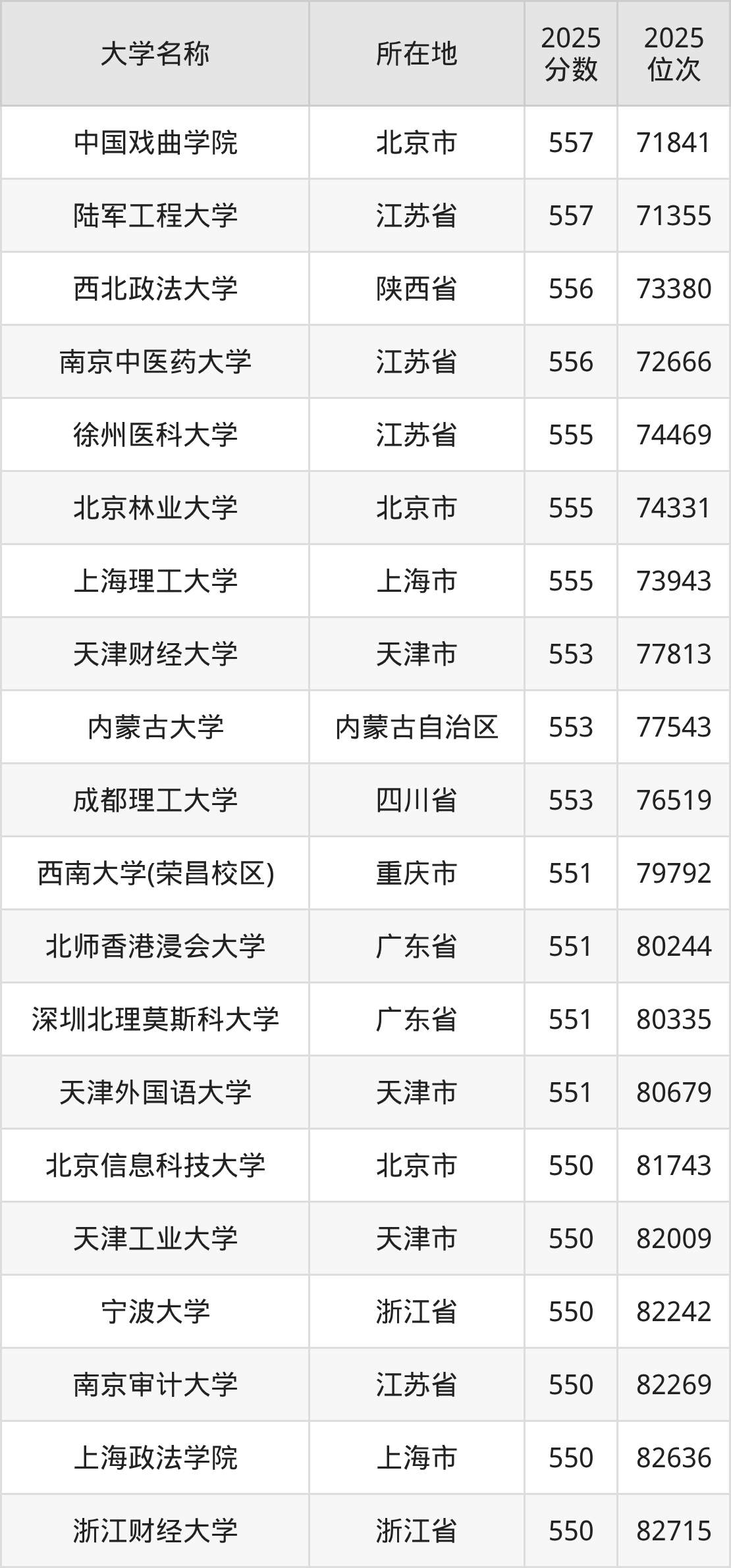 小编依据圆梦志愿平台提供的全国高校在山东省招生录取数据,精心筛选并整理了针对2026年山东考生的一份重要参考:列出了2025年录取位次接近山东省第79000名的大学清单。