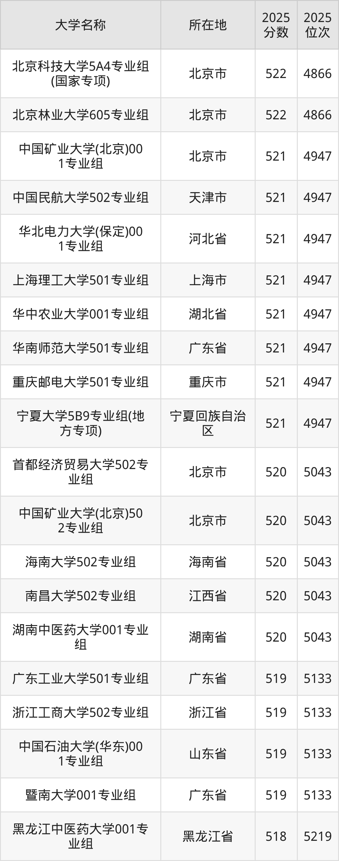 有9所分布在北京、上海、广东、浙江等报考热门地区,具体包含:北京科技大学、北京林业大学、中国矿业大学(北京)、上海理工大学、华南师范大学、首都经济贸易大学、广东工业大学、浙江工商大学、暨南大学。