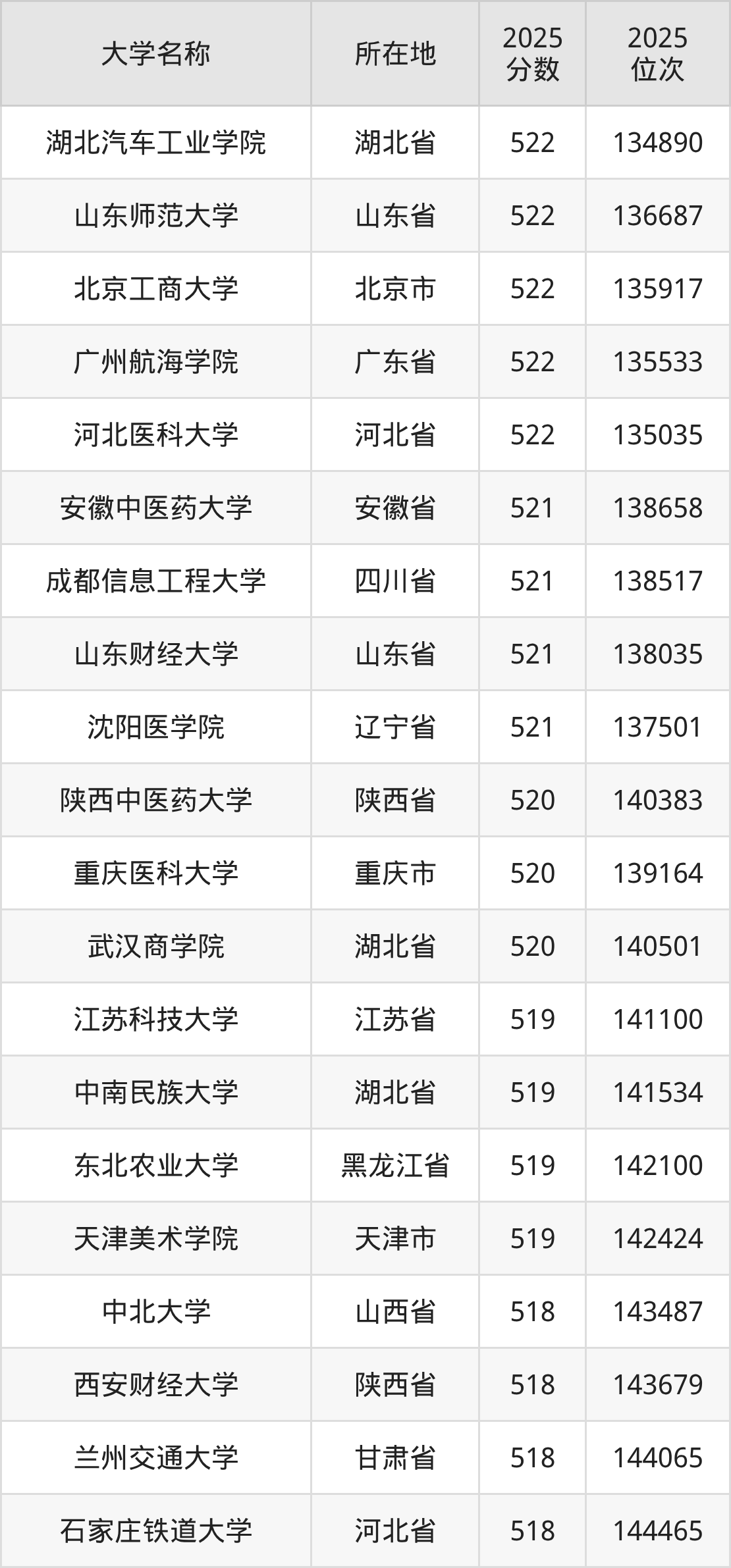小编依据圆梦志愿平台提供的全国高校在山东省招生录取数据,精心筛选并整理了针对2026年山东考生的一份重要参考:列出了2025年录取位次接近山东省第140000名的大学清单。