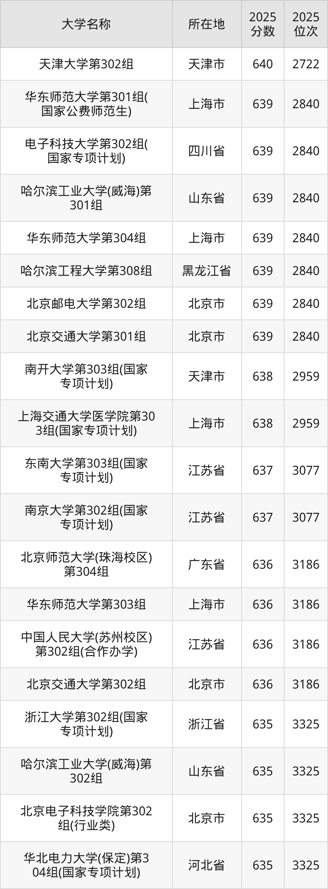 2025年山西高考物理类2500名至3500名对应的高考分数是634分至641分,请2026年山西考生参考!