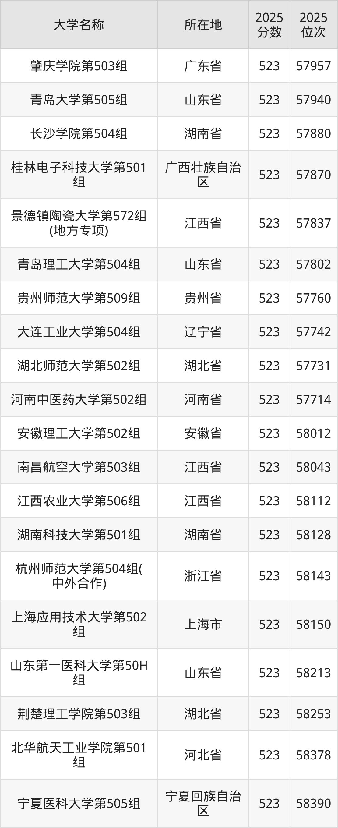 小编依据圆梦志愿平台提供的全国高校在江西省招生录取数据,精心筛选并整理了针对2026年江西考生的一份重要参考:列出了2025年录取位次接近江西省第58000名的大学清单。
