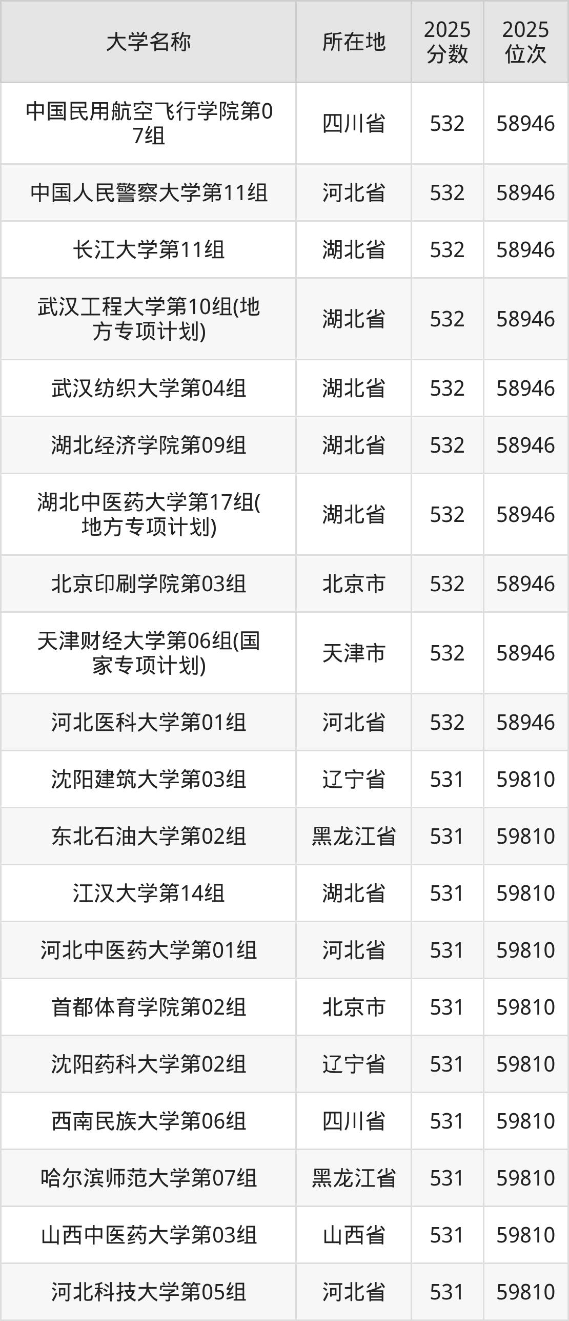 小编依据圆梦志愿平台提供的全国高校在湖北省招生录取数据,精心筛选并整理了针对2026年湖北考生的一份重要参考:列出了2025年录取位次接近湖北省第59000名的大学清单。