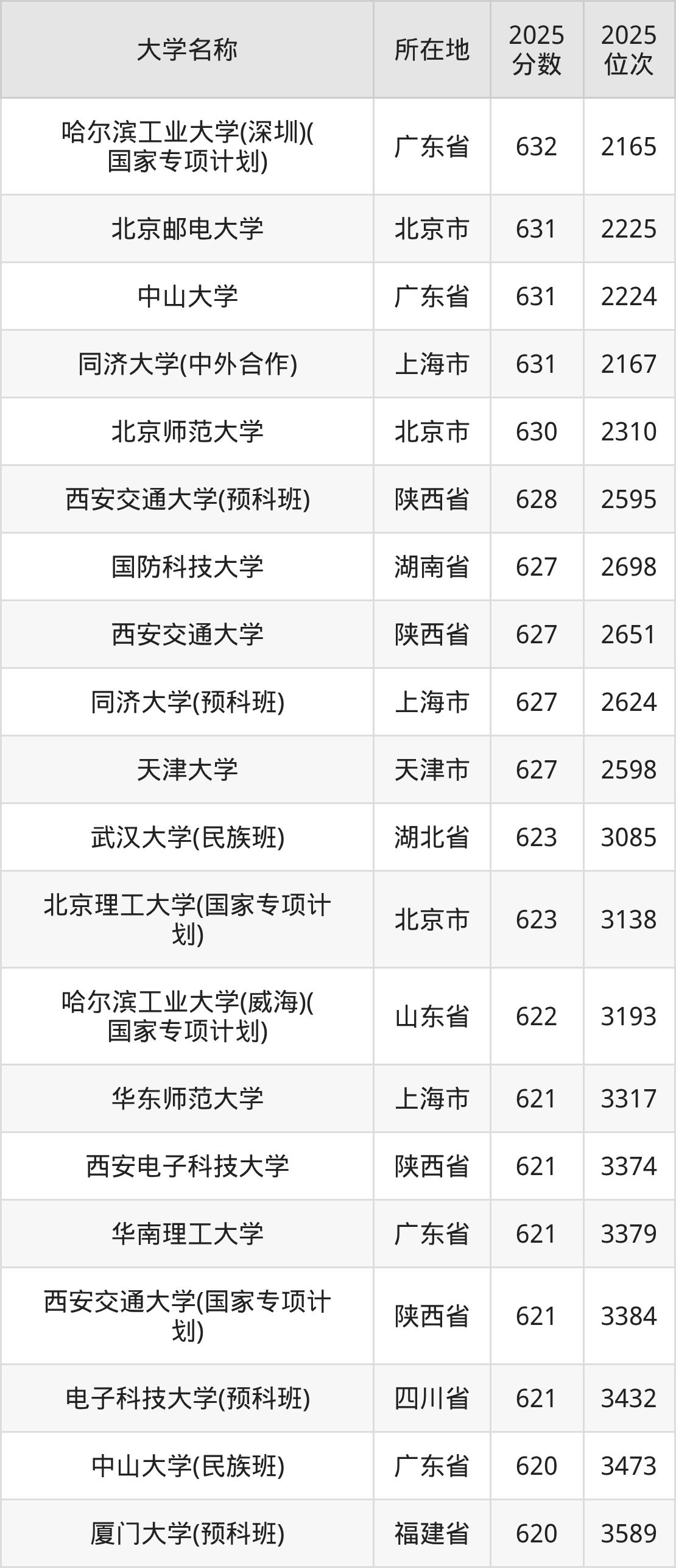 2025年贵州高考物理类2500名至3500名对应的高考分数是621分至628分,请2026年贵州考生参考!