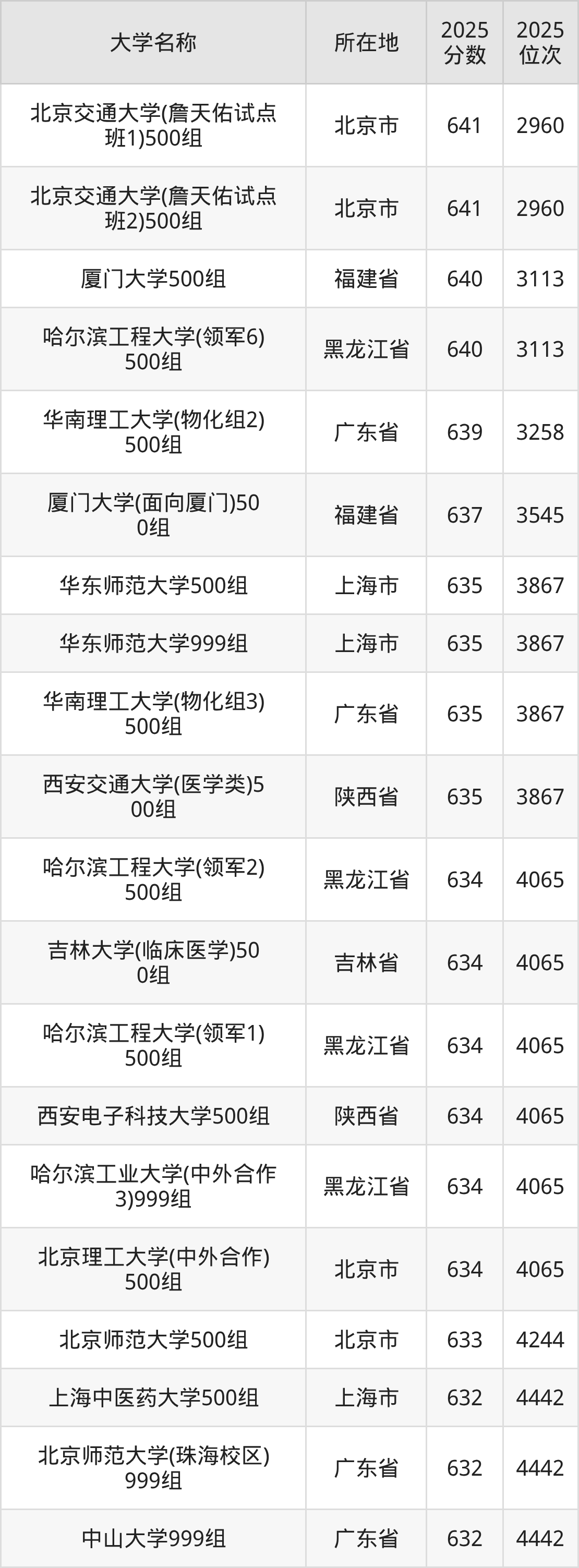 2025年福建高考物理类3500名至4500名对应的高考分数是632分至637分,请2026年福建考生参考!