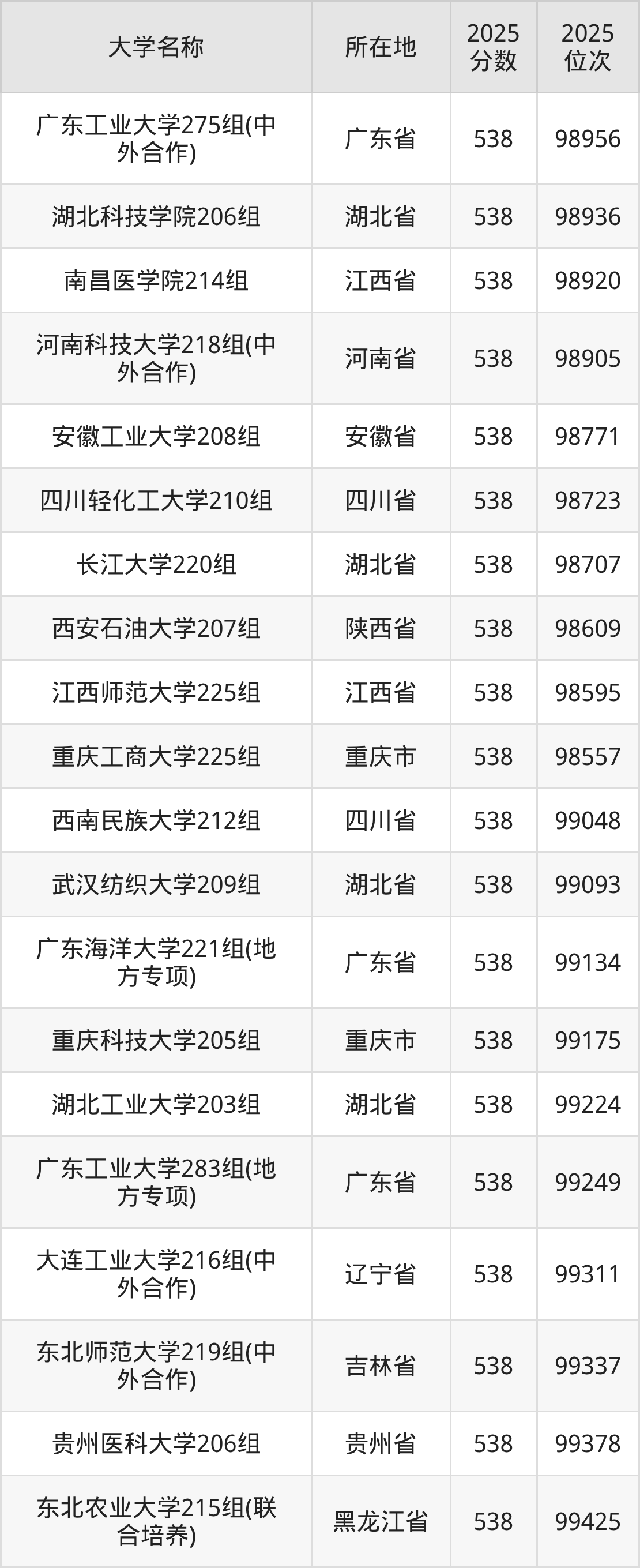 小编依据圆梦志愿平台提供的全国高校在广东省招生录取数据,精心筛选并整理了针对2026年广东考生的一份重要参考:列出了2025年录取位次接近广东省第99000名的大学清单。