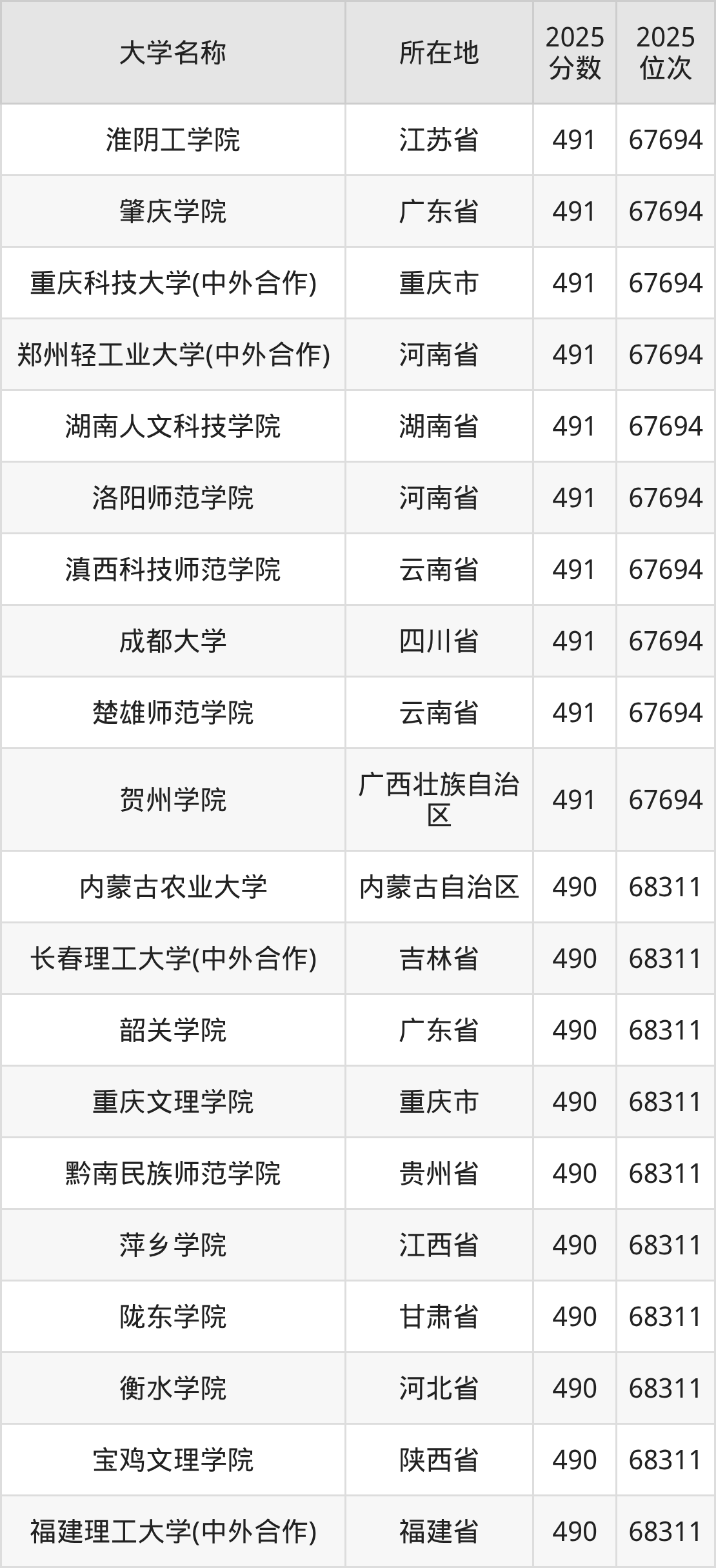 小编依据圆梦志愿平台提供的全国高校在重庆市招生录取数据,精心筛选并整理了针对2026年重庆考生的一份重要参考:列出了2025年录取位次接近重庆市第68000名的大学清单。