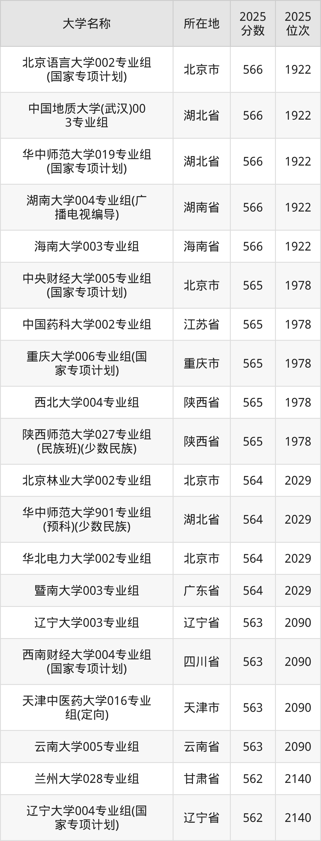 2025年甘肃高考历史类1500名至2500名对应的高考分数是556分至574分,请2026年甘肃考生参考!