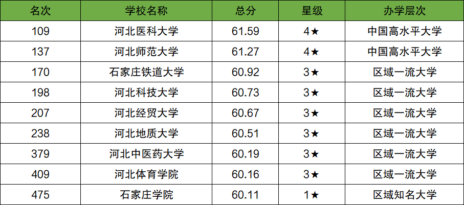 注:本文整理出的石家庄各大学排名均为石家庄公办本科院校的排名。