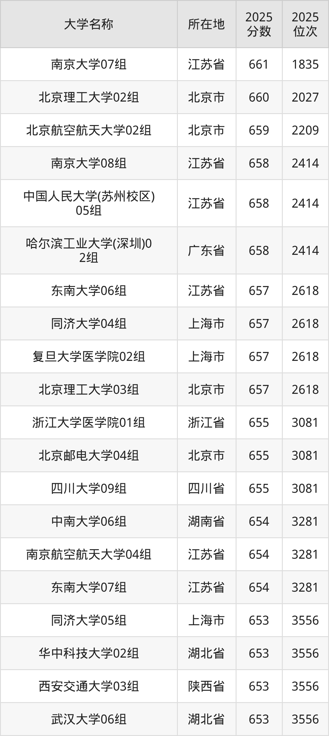 有7所分布在北京、广东、上海、浙江等报考热门地区,具体包含:北京理工大学、北京航空航天大学、哈尔滨工业大学(深圳)、同济大学、复旦大学上海医学院、浙江大学医学院、北京邮电大学。