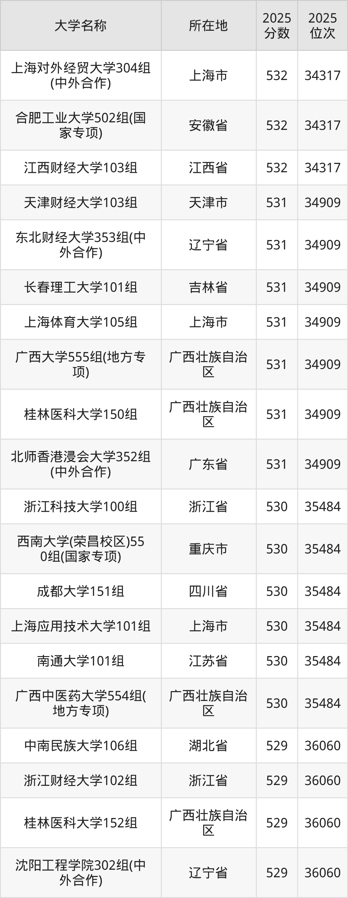 小编依据圆梦志愿平台提供的全国高校在广西壮族自治区招生录取数据,精心筛选并整理了针对2026年广西考生的一份重要参考:列出了2025年录取位次接近广西壮族自治区第35000名的大学清单。
